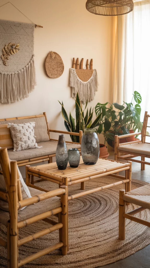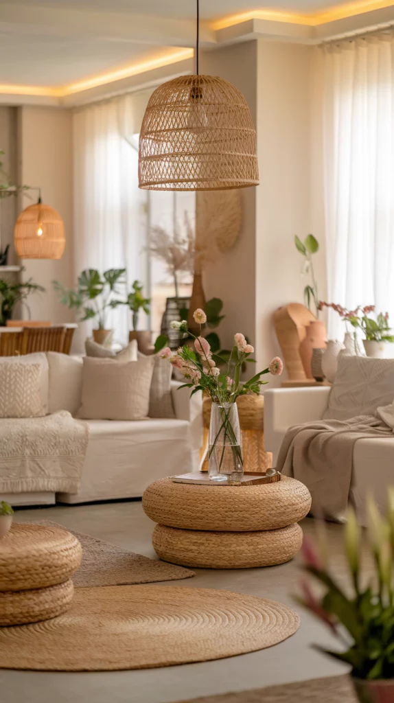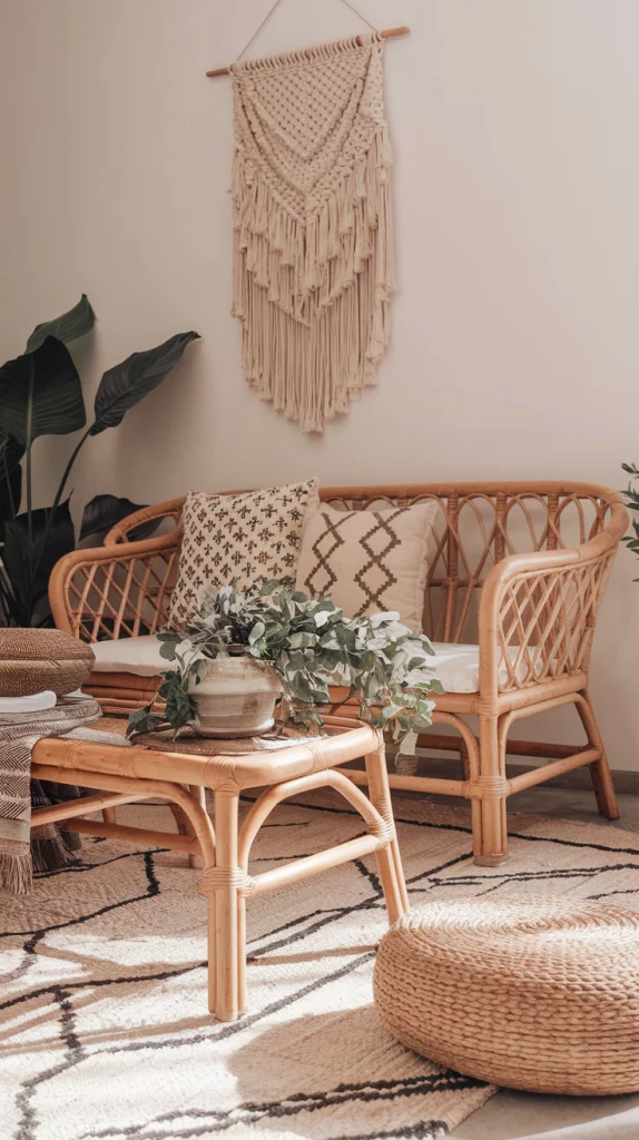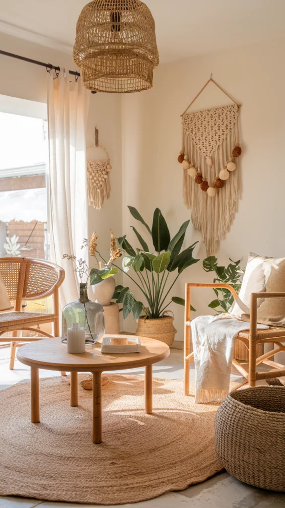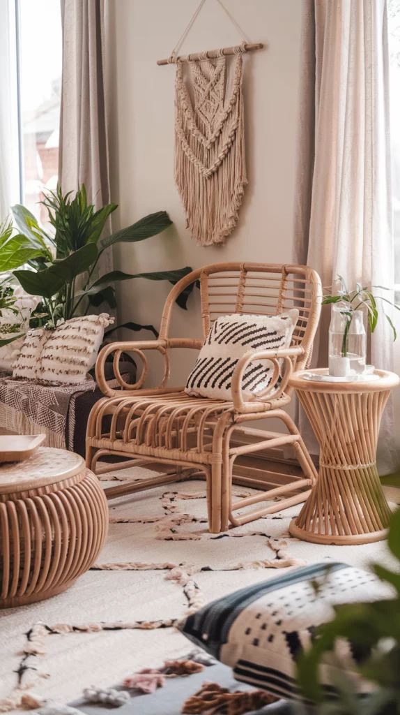 Modern Bohemian decor is a chic way to embrace Spring 2025 trends. Focus on a neutral base with pops of vibrant spring colors like coral or turquoise, incorporating eclectic patterns and layered textiles. Rattan furniture, macramé wall hangings, and hanging planters add texture and a relaxed vibe. Finish the look with decorative accents such as fringed throws, patterned cushions, and fresh greenery.