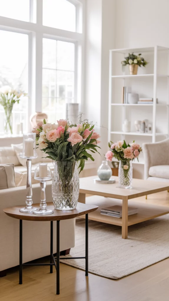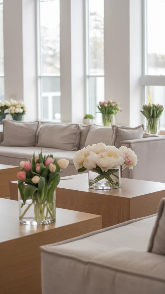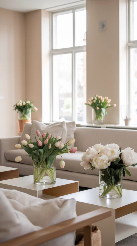 Fresh floral arrangements are a timeless way to bring spring into your home, and Spring 2025 is all about modern, minimalist displays. Opt for a mix of seasonal blooms like tulips, daffodils, and peonies, arranged in sleek vases made of glass or ceramic. For a more contemporary look, consider monochromatic arrangements or asymmetrical designs. Place these floral pieces on coffee tables, dining tables, or entryway consoles to instantly brighten your space and create a lively, welcoming atmosphere.