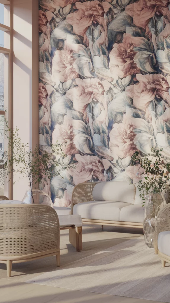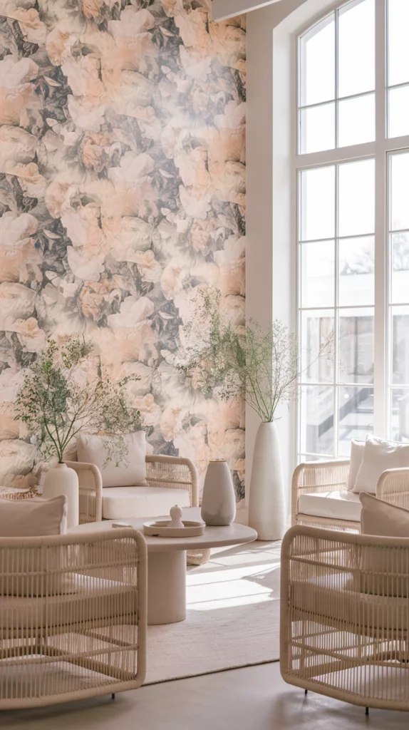 Floral wallpapers are making a grand comeback in Spring 2025, featuring oversized, painterly blooms and intricate botanical patterns. These designs add depth and dimension to walls while infusing rooms with a vibrant and lively ambiance. Popular options include soft pastels for a subtle touch and bold, saturated tones for a statement-making look. Pair floral wallpaper with minimalist furniture to balance the space, or add rattan accents for a natural vibe. This trend brings the outside in, making every room feel fresh and welcoming.