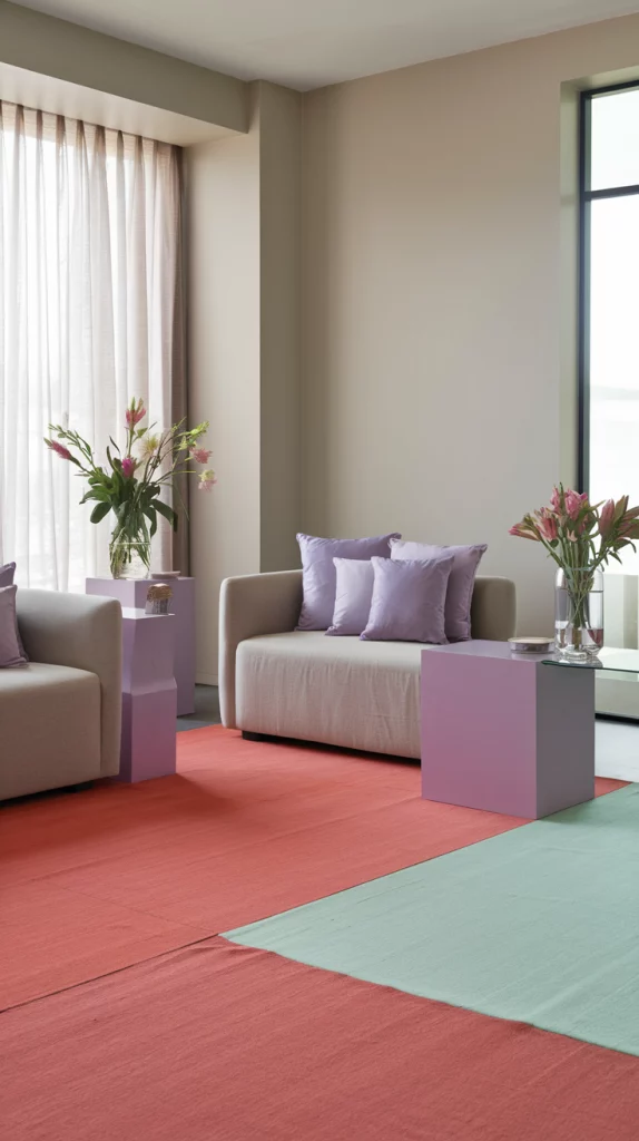 Color blocking is a bold yet sophisticated trend for Spring 2025, perfect for contemporary interiors. Use two or three contrasting spring tones, such as coral and mint green or mustard yellow and lavender, in decor items like cushions, rugs, or wall art. This approach adds energy and character to your space without overwhelming it. Balance bold accents with neutral furniture for a polished look.