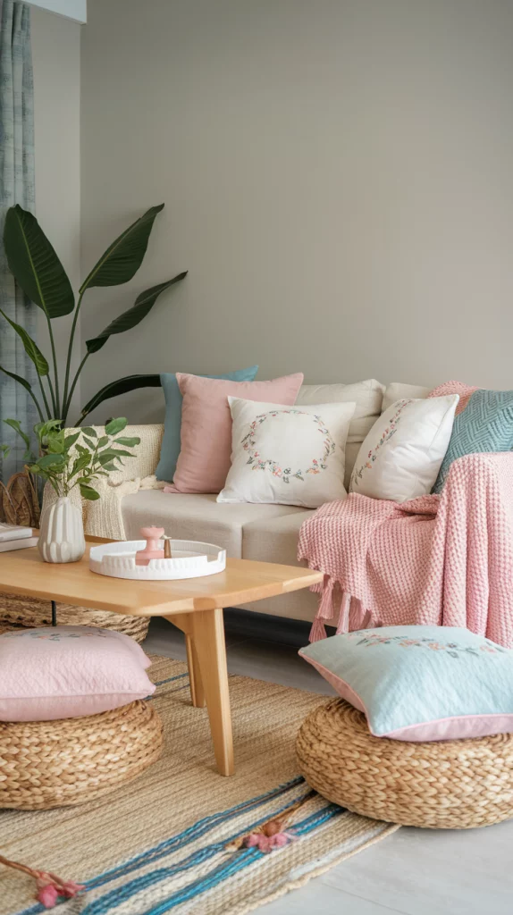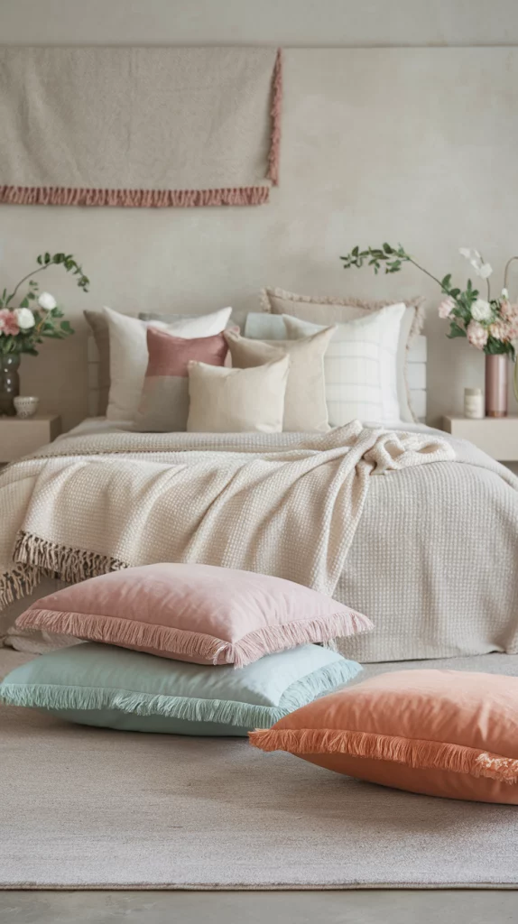 Layered textures are a key trend for Spring 2025, adding depth and interest to any space. Incorporate a mix of materials such as woven rugs, knitted throws, and embroidered cushions for a cozy yet stylish look. Pair soft linens with natural woods or metallic accents for balance. Layering textures in complementary spring tones like pastels or earthy neutrals creates a sophisticated, multi-dimensional aesthetic that feels fresh and inviting.
