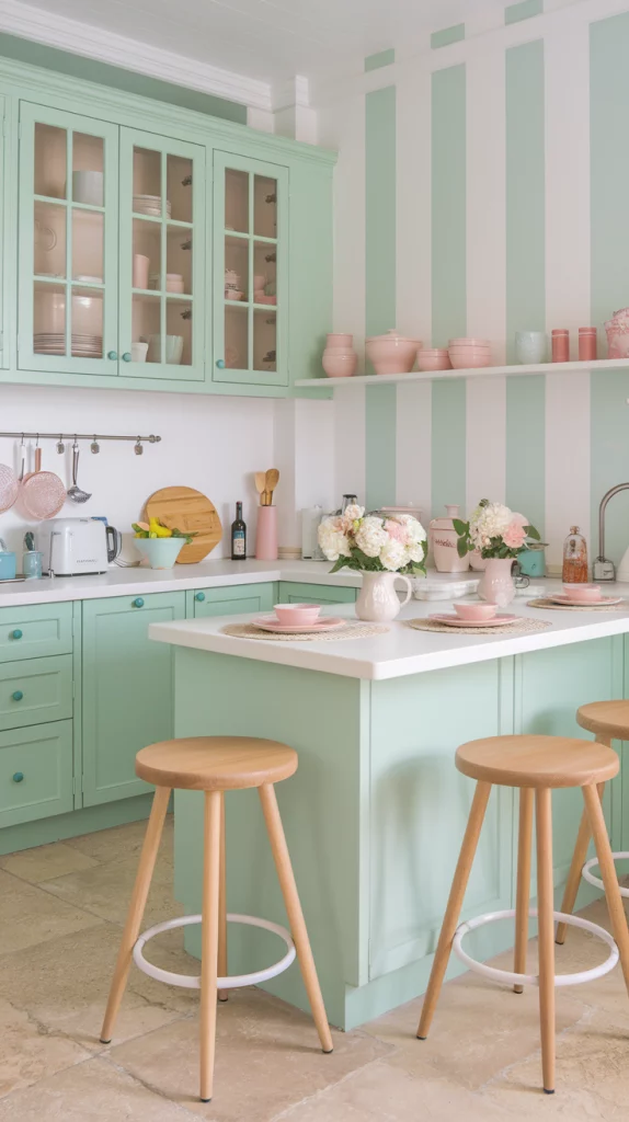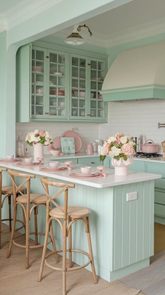 Pastel colors are an essential part of Spring 2025 decor, and the kitchen is no exception. Incorporate soft shades of mint, blush pink, lavender, or baby blue through appliances, cabinetry, or decor pieces like dishware and curtains. These gentle hues instantly brighten the space and create a welcoming ambiance. Pairing pastels with white or natural wood tones enhances their charm and maintains a clean, modern aesthetic.
