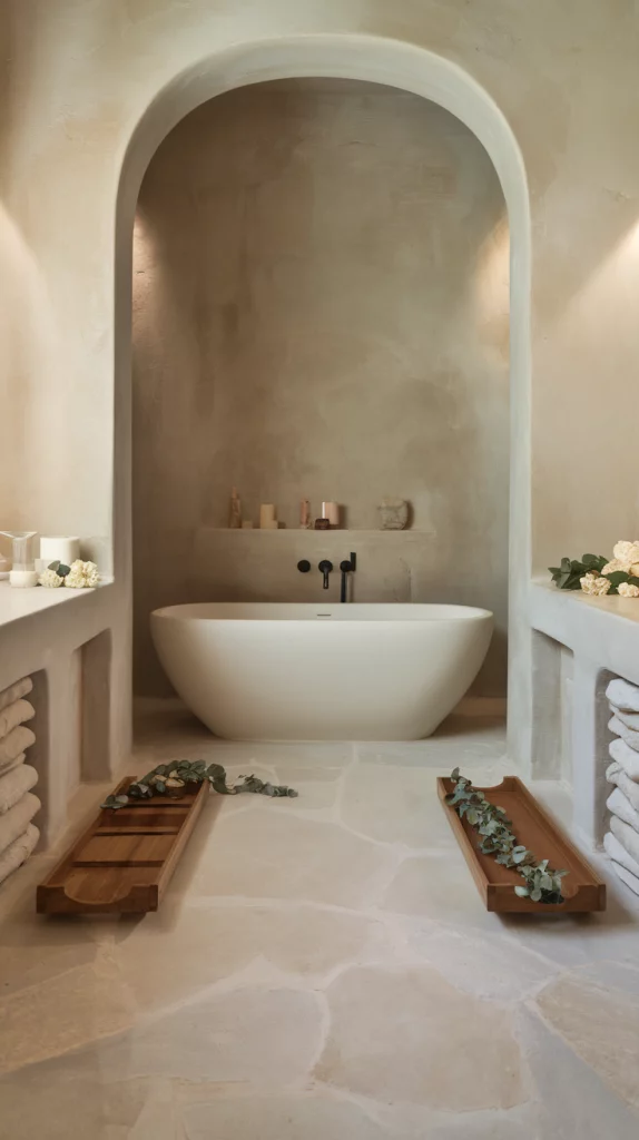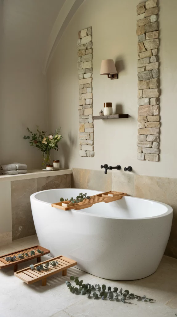 Turn your bathroom into a spa-like retreat with Spring 2025 decor ideas. Use light, neutral tones for towels and rugs, and introduce small touches of greenery, like potted plants or eucalyptus sprigs. Add natural elements such as wooden trays, stone soap dispensers, and bamboo bath mats. Soft lighting, scented candles, and fresh floral arrangements complete the calming atmosphere, bringing the essence of spring to your self-care space.