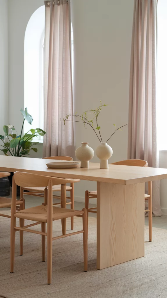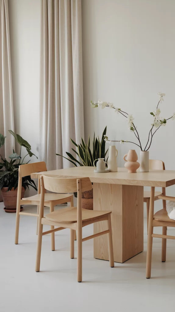 Natural wood is a staple in Spring 2025 interiors, perfect for achieving a clean and minimalist aesthetic. Light oak and birch are particularly trendy, often used for furniture like coffee tables, shelving units, and sideboards. Pairing natural wood with white or soft neutral walls enhances the minimalist appeal, while adding greenery or textured fabrics creates a warm and inviting atmosphere. This approach is both eco-friendly and timeless.