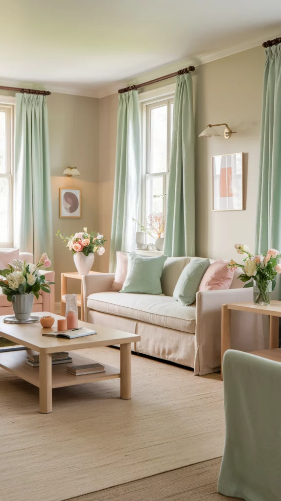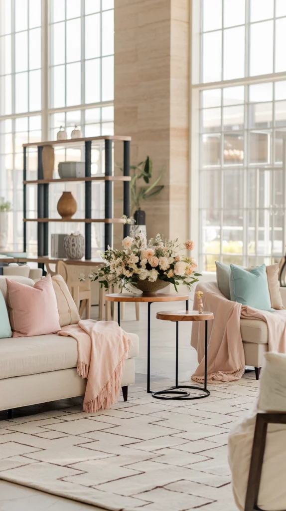 Soft neutral decor is a timeless trend elevated with subtle spring hues for 2025. Combine shades like ivory, beige, and light gray with pastel accents such as blush pink or mint green. Use these tones in upholstery, curtains, and decor accessories for a calming yet stylish space. Add fresh flowers or potted plants for a pop of color and a connection to nature.