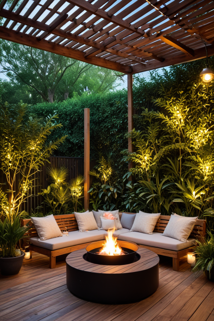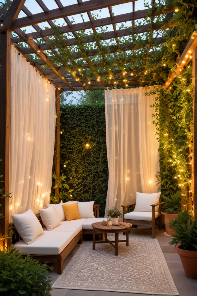 Repurposing part of your patio into a comfortable reading nook serves as a wonderful escape. A cozy armchair or daybed, with plenty of cushions and blankets, creates an inviting space. Side tables for books, a soft outdoor rug, wall sconces or floor lamps for ambient light will round off the decor. The combination of natural and soft materials increases the comfort of the nook.