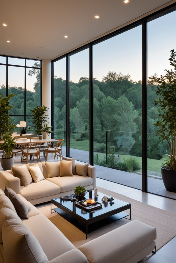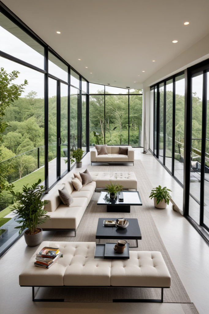 A glass enclosed veranda combines the elegance of the outside world with a warm, indoor experience. The panoramic floor-to-ceiling windows do not only provide breathtaking views, but also shield you from extreme weather conditions. Such a design is compatible with modern and contemporary homes and is completed with dashing furniture, trendy lighting, and indoor plants that add to the natural vibe. Adjusting the light can be done using retractable blinds which can improve the atmosphere.