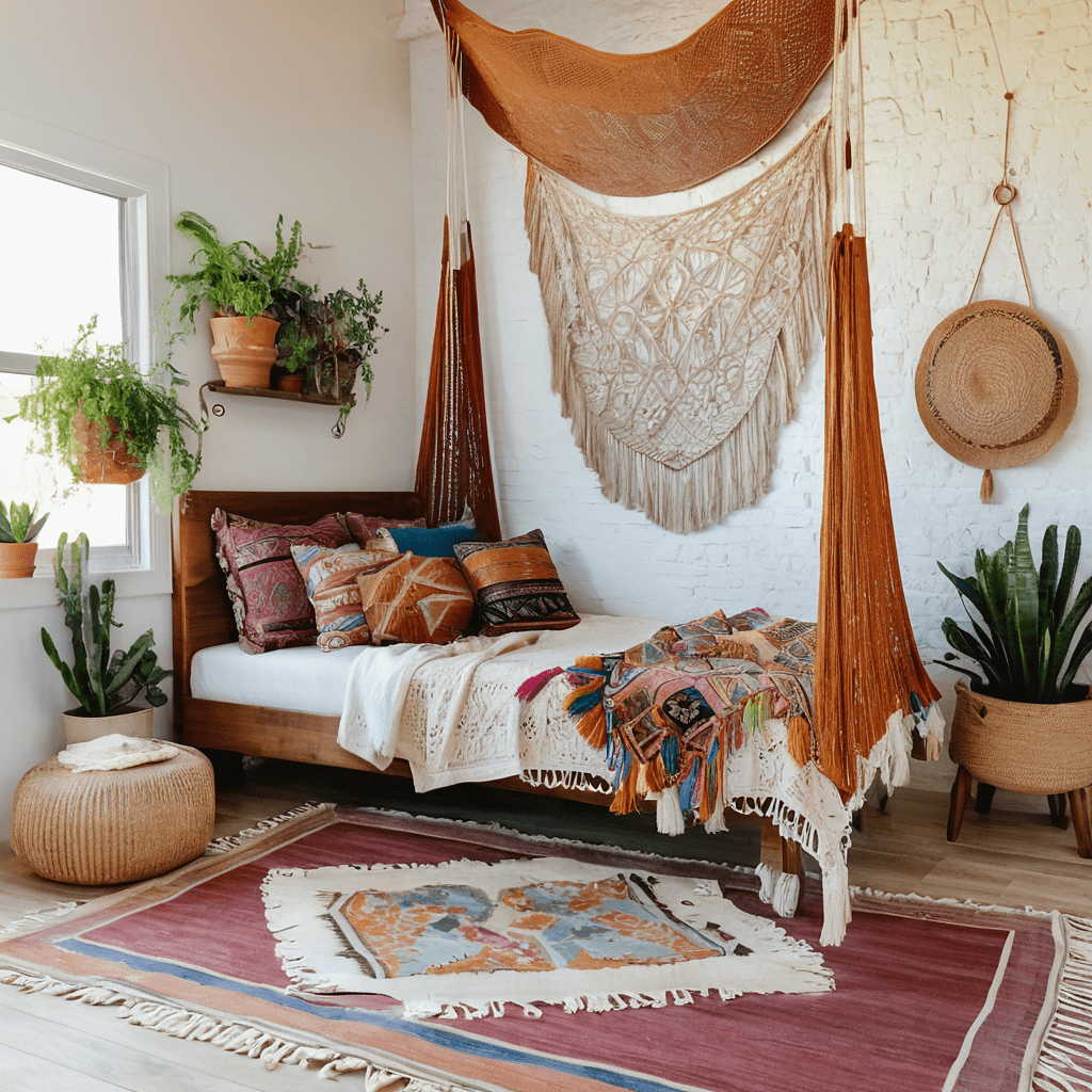 One who is attracted to the boho-chic and hippie vibe will be infatuated with bohemian ideas that offer a vintage bedroom style full of opportunities. Initially, create a neutral base if you like and put in vibrant colors, bold designs, and various textures. Affirmation through such bohemian accents as a macramé wall hanging, a vintage Turkish rug, and a mix of patterned throw pillows are some of the ways to do it. Use horizons of constellations to bring a quirky feel to your room or make a bed with a canopy.