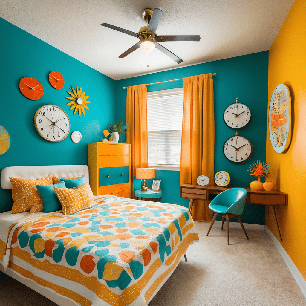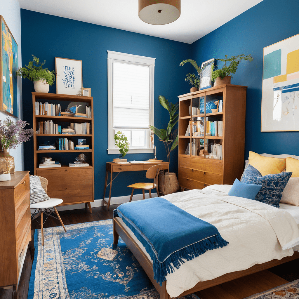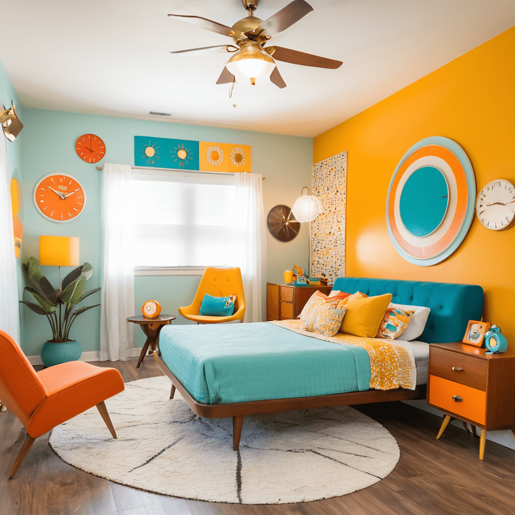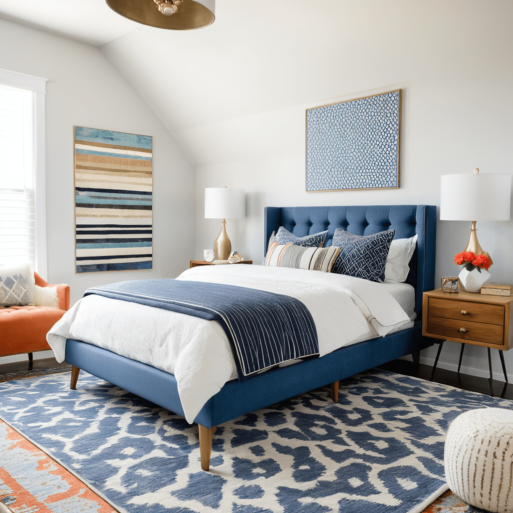 While vintage designs are characteristic for evoking old times, their fusion with modern elements can transform them into livelier and more engaging spaces. Outfit with some supplementary pieces also like the sleek metal lamps or the minimalist wall art in juxtaposition with the vintage pieces. A blue upholstered bed with straight lines can be matched with a retro nightstand, while a modern geometric rug can bring a new breeze to an otherwise classic room.