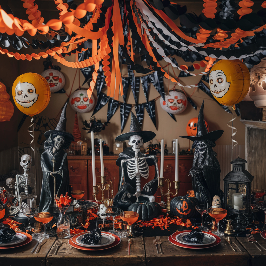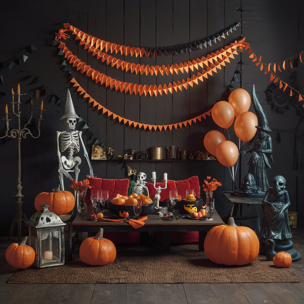 Traditional Halloween party decor is mainly about setting the atmosphere with the old and the classic. Use sculptures and statues of witches and skeletons, as well as retro paper streamers and vintage-style balloons to create a spooky atmosphere. By using old lanterns and antique candle holders, you can bring back the spirit of Halloween that your guests will remember. The use of vintage-inspired place settings will also help your party to have a classy and memorable tone.
