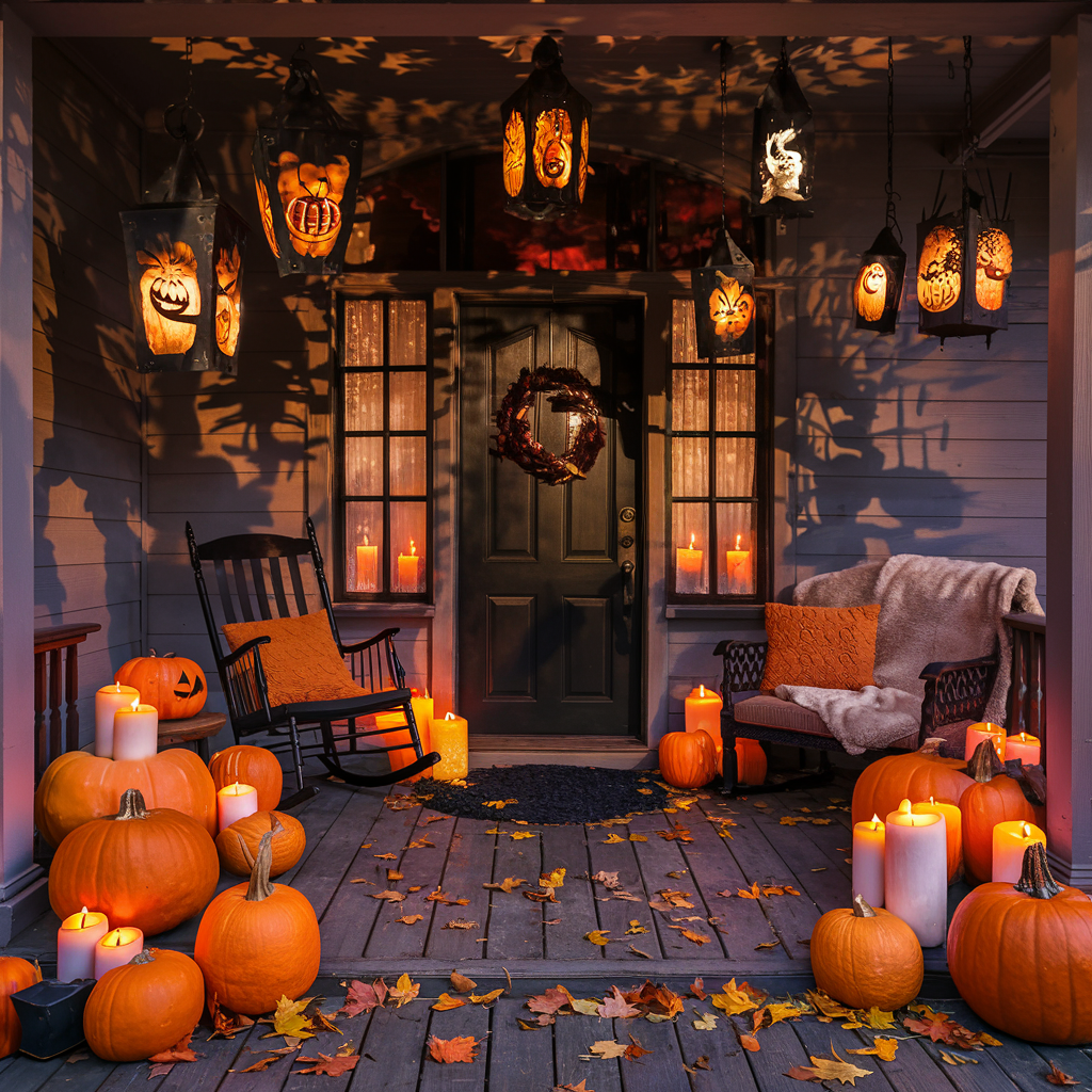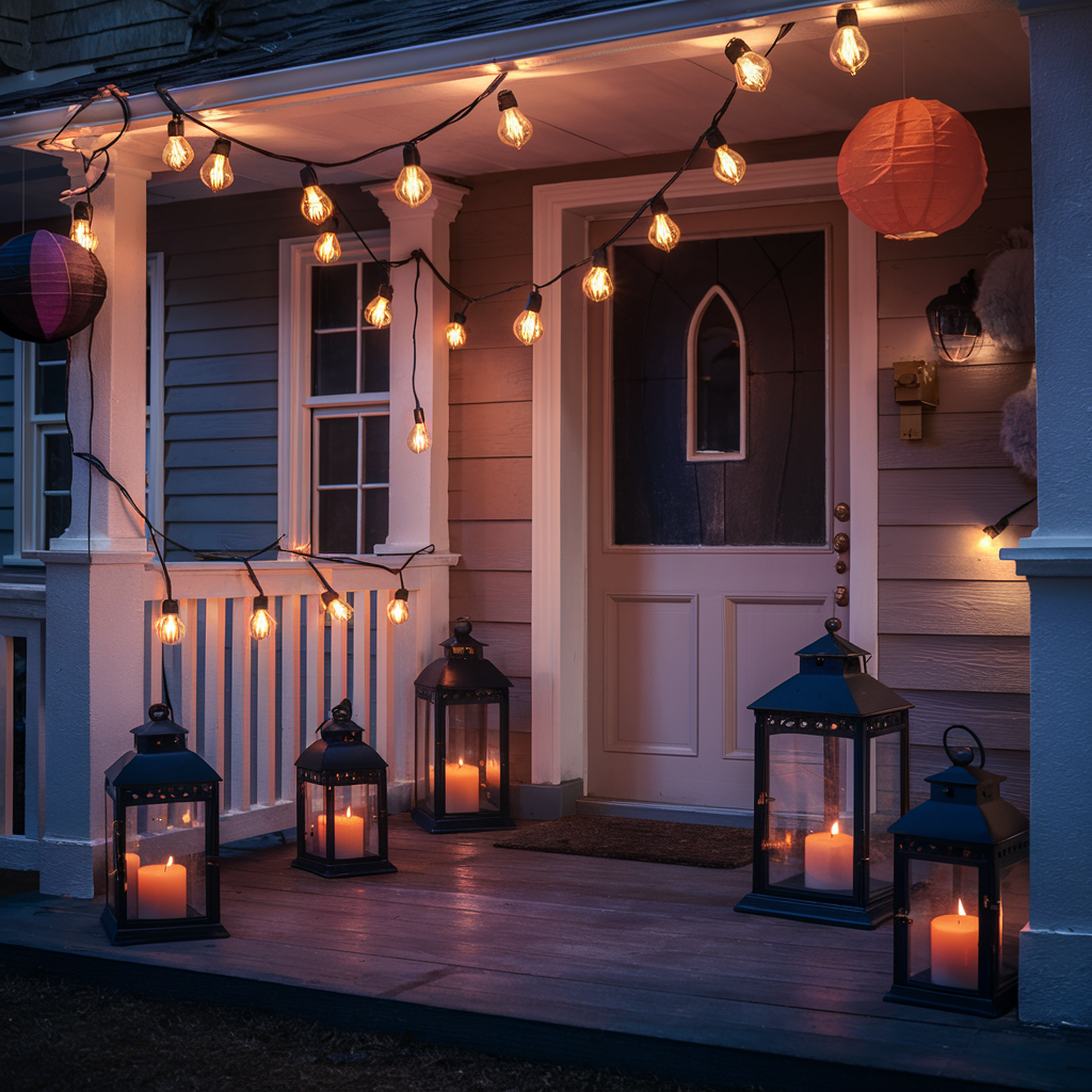 Exterior lighting is a vital element in setting the right atmosphere for Halloween. And retro lighting alternatives can take your home back to the era of long ago. For illumination of your front porch or garden, try using thrifted lanterns, vintage string lights, and old-fashioned candles. This type of lighting creates a whimsical mood, which in turn increases the sense of mystery and possibilities of getting scared, as well as the feeling of comfort and identity. If you prefer a style that is more childish, you can make DIY lanterns with a cardstock paper base, muted colors of orange, black, and purple, and keep the retro principle intact.