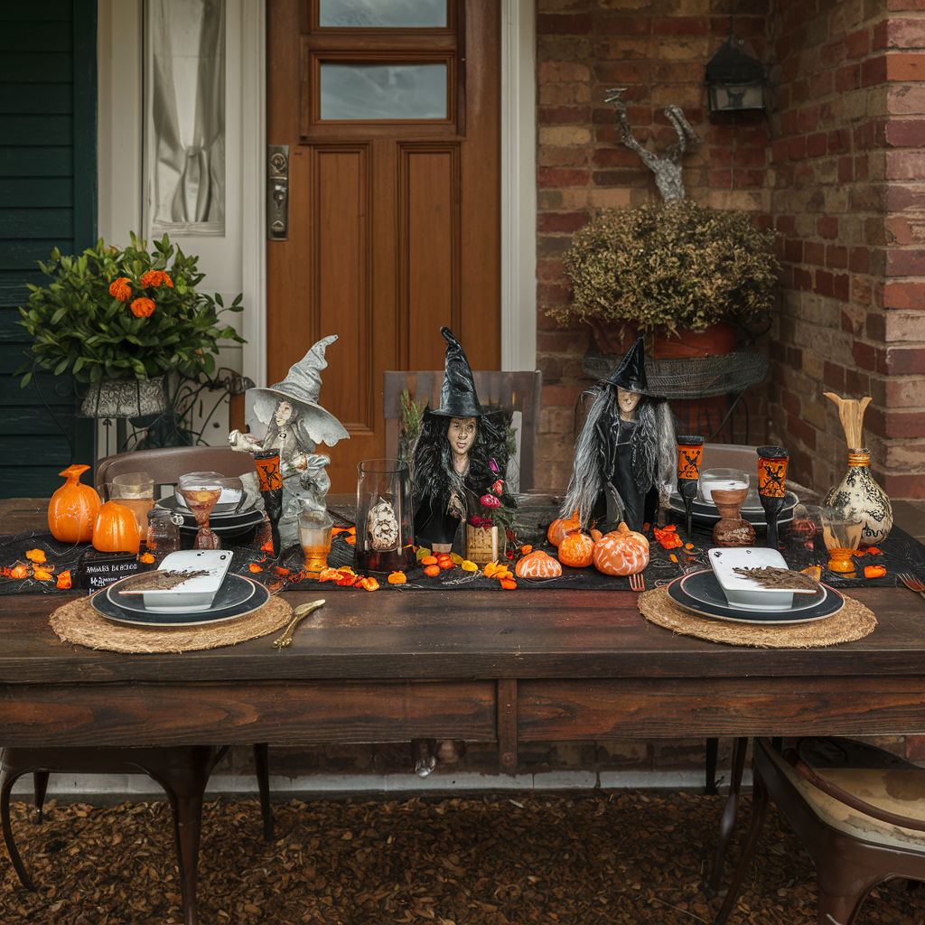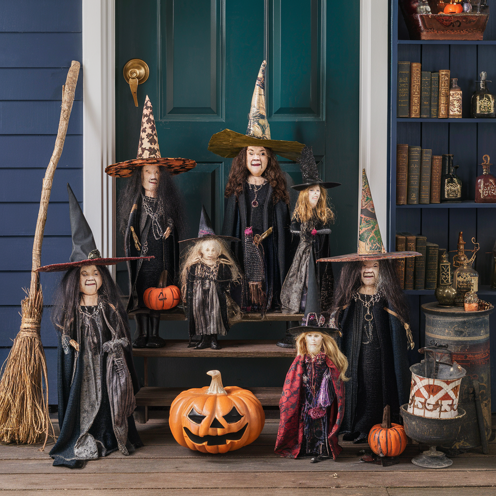 Witches are the main part of the Halloween celebration, and the old-school witch decorations can make your vintage-themed decor more exciting and mystical. You can use the thrifted witch figurines, sculptures, or DIY witch hats and broomsticks as part of your indoor or outdoor setup. You can scatter these decor pieces around your home to create a sophisticated and spooky mood, such as a witch by the fireplace or a broomstick leaning on your front porch. Style retro items such as old spell books or potion bottles to give it a more vintage look.