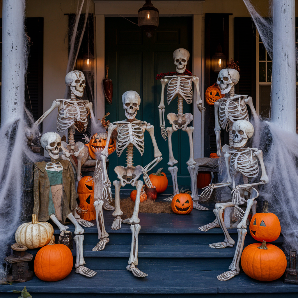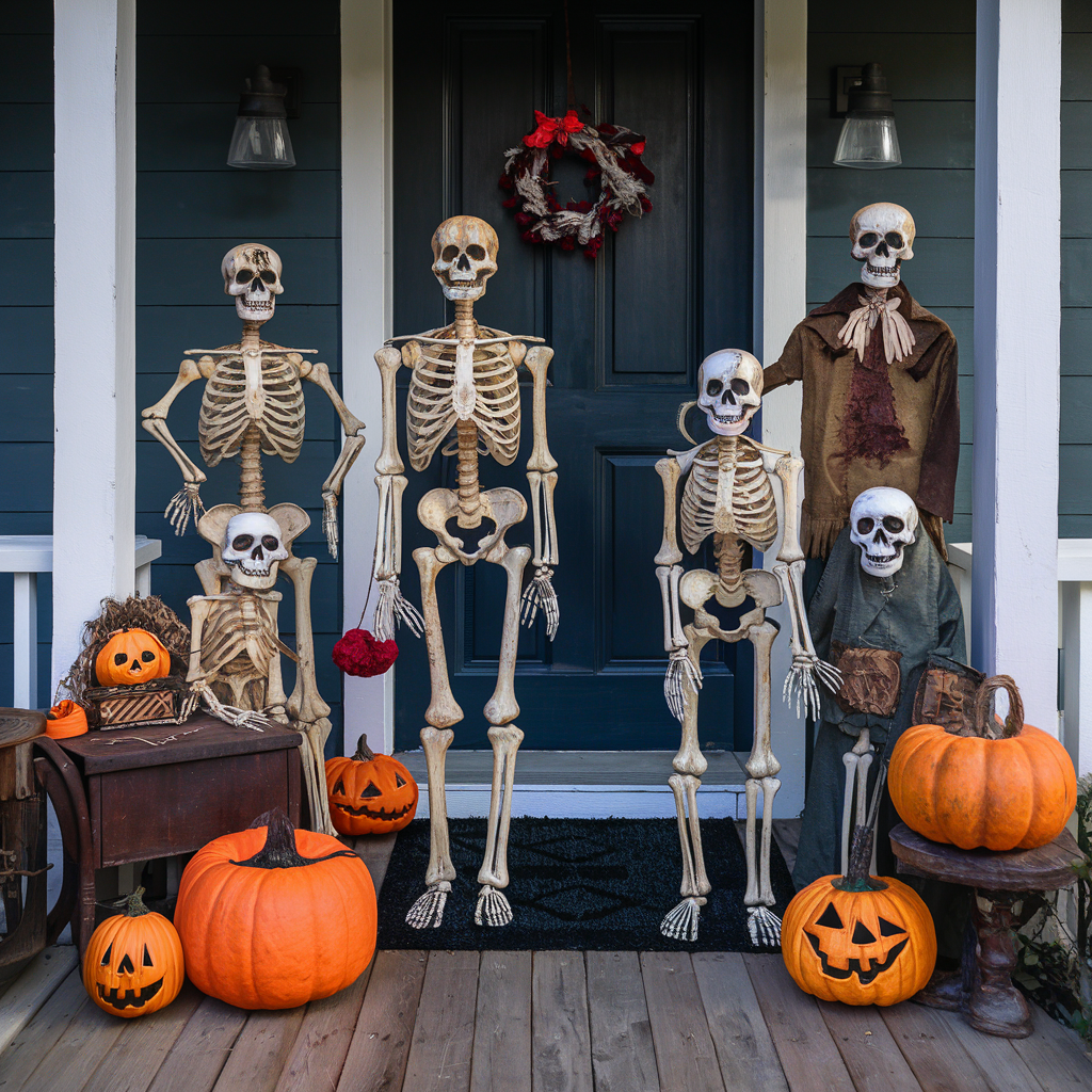 The foamed skeletons found their way into the most common Halloween decorations, but adding an old-fashioned skeleton touch for Halloween can make your decor more somber and retro. For a spooky but nostalgic scene, thrifted skeletons with their small cracks and worn-out look are perfect. For example, you can place these skeletons on the side of the road, or on top of a hedge, or even make them stand as guards in front of the house. Give a vintage and realistic look to new girlies by combining them with torn clothes or old accessories to make their look alive.