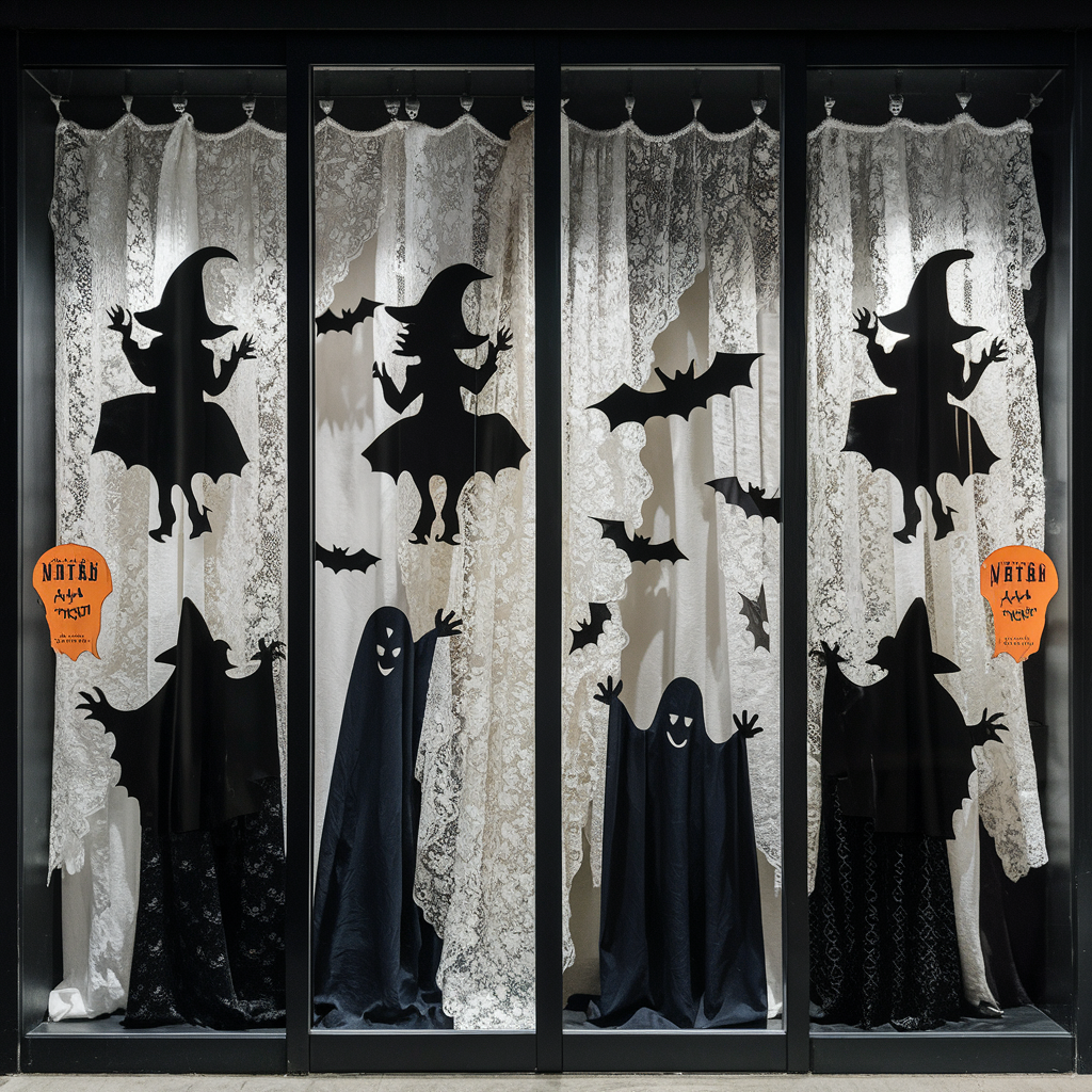 Windows become a fine artwork to provide a traditional Halloween ambience. Go ahead and get those Halloween figures like witches, bats and ghosts cut out so that the display becomes a masterpiece of class and horror. Furthermore, the photisical thinner can be used to promote the use of the curtains or clingings. These decors not only make up the entire mood of the place but also attract people to see the mesmerizing view from your home.