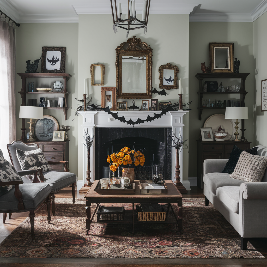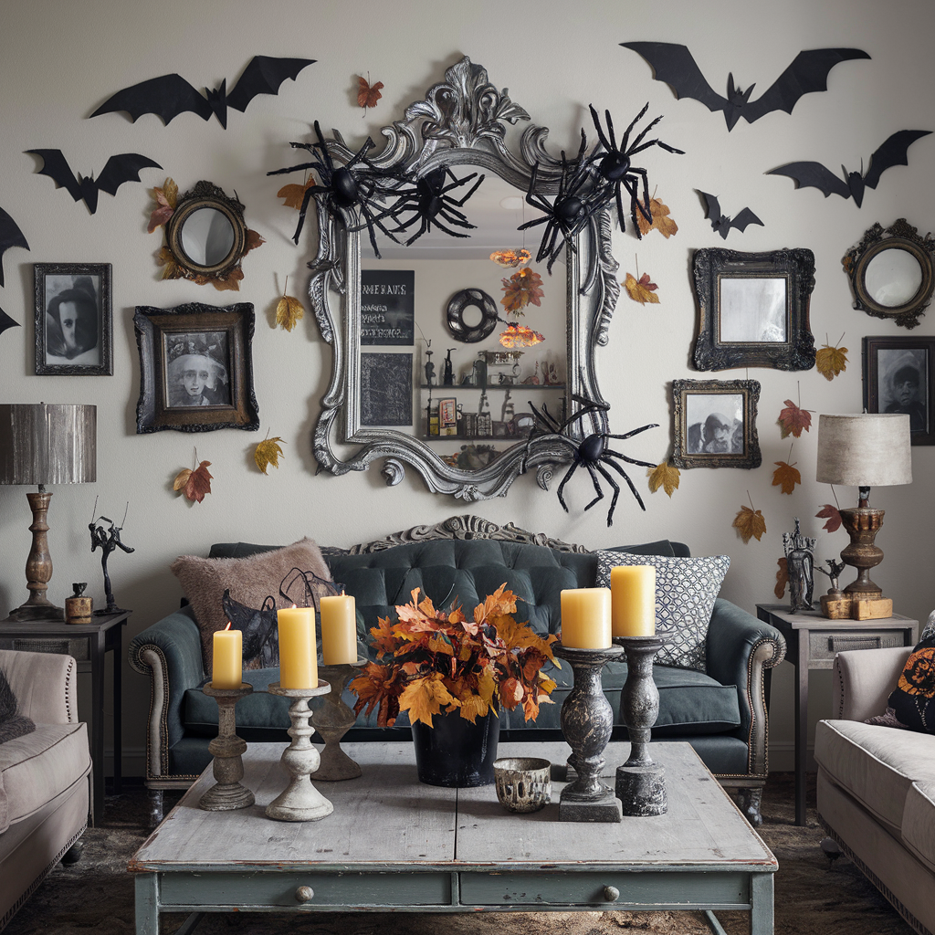 Adding antique elements to your Halloween decor creates an authentic and deep feeling. Thrifted finds such as old picture frames, vintage mirrors, and antique candles would be a great option to complement your interior living room setting. These pieces bring a part of the past to light and at the same time, they establish a spooky but classy atmosphere. To create a more harmonious style, couple the antique elements with modern DIY creations like painted pumpkins or hand-crafted paper bats.