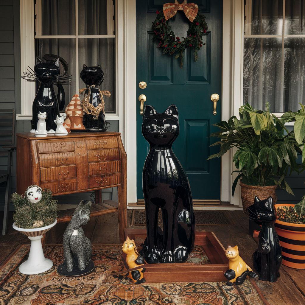 Black cats have been the main symbol of Halloween for a long time, and vintage black cat decorations can also be used to give your place a bit of whimsy and enigma. Those decorations are ceramic figures, sculptures, statues, or homemade paper cutouts with vintage, classic designs. They can be displayed on shelves, mantels, or as part of a larger Halloween display in your indoor living room or front porch. The black cats in your decor bring a classic, spooky vibe that makes you feel both playful and nostalgic.