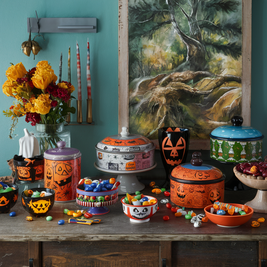I suppose one thing that could never be left out of mentioning when talking about Halloween is the candy, as it is always a major part of this holiday, and using vintage containers and bowls can be a rather cute decorative element. Search for thrifted tins, glass jars, or ceramic bowls with Halloween motifs in secondhand shops, or you can make your own versions using cardstock papers and other vintage materials. There are new ideas such as putting these containers in your home indoors or placing them on your front porch to generously receive people in that antique and retro way.