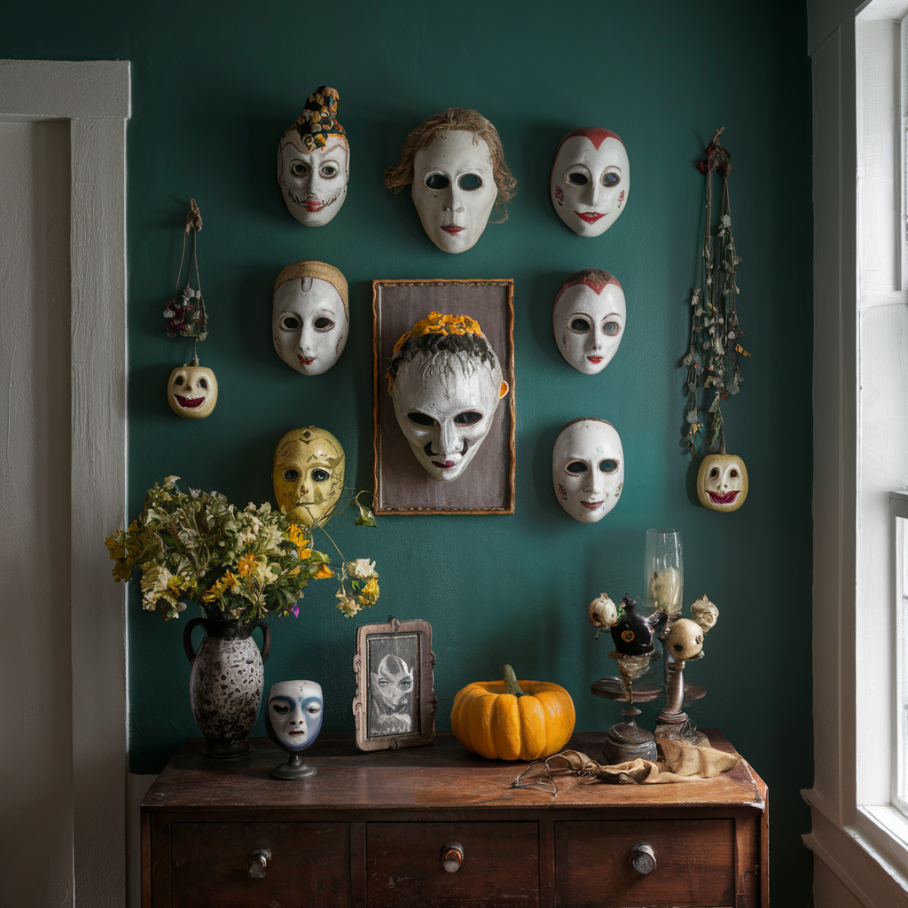The unique and rare antique Halloween masks can be utilized to the walls as unique and artistic accessories. These masks, which usually contain a touch of whimsy, can be showcased either framed or directly placed on the wall to produce a vivid visual effect. The ones with exquisite details and bright colors that will take you back in time while still fitting into a contemporary style should be the ones you pick. Arrange them in a gallery wall fashion in your indoor spaces and as a result, you will get yourself a retro vibe added to your Halloween setting.