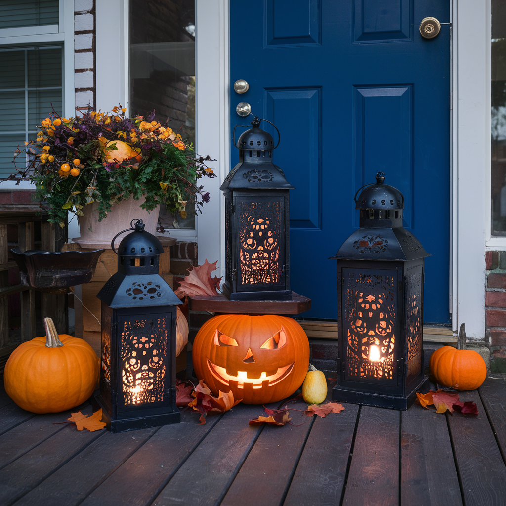Lighting is one of the main elements in creating a cozy, scary, or funny atmosphere during Halloween. The vintage lanterns that were either sourced from the thrifty stores or made by DIY process bring the warm, flickering light to both indoors and outdoors. Let them shine on the front porch, and in this way, no one will be afraid to come to a house with eerie walkways. The lanterns can also look great in the living room decorated for Halloween. More interesting effects can be achieved by using lanterns with custom-made cutouts, which change the light\u2019s path.