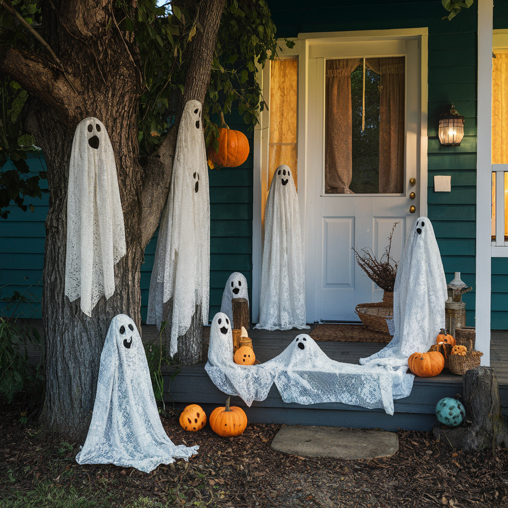 Ghost decorations are another classic Halloween element, and using antique-inspired designs can add an eerie elegance to your decor. You can search for thrift stores or DIY haunted sculptures made of vintage materials such as lace or muslin, which can be applied over the frame’s areas for a spooky look. Those haunting ghosts can be hung on the trees, placed in the living room, or even to the front porch to welcome the visitors. Such décor with a ghostly ambiance and gentle, airy texture elicits coziness, yet the feeling of being somewhere else for a moment, thus we have got the vintage Halloween theme at our disposal.
