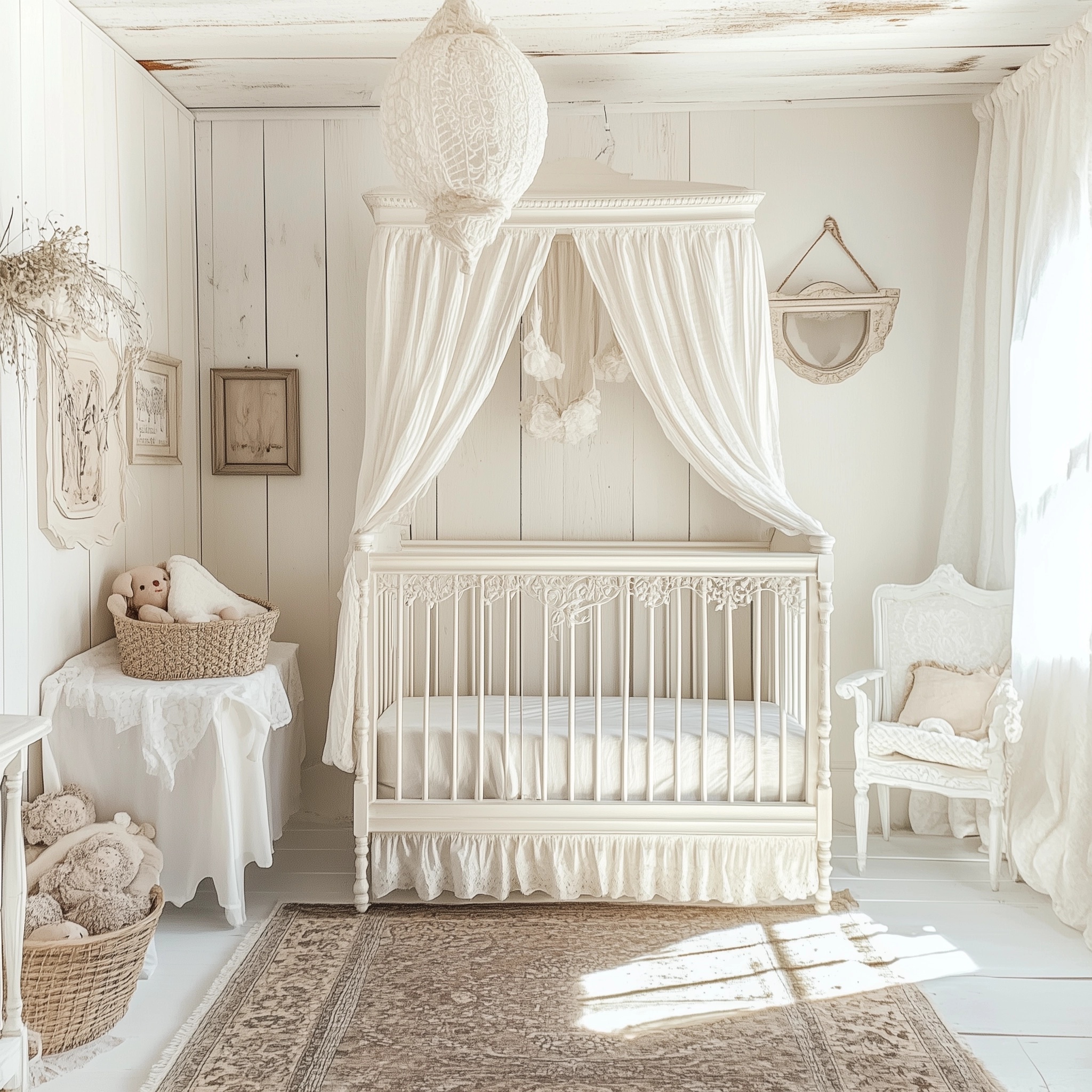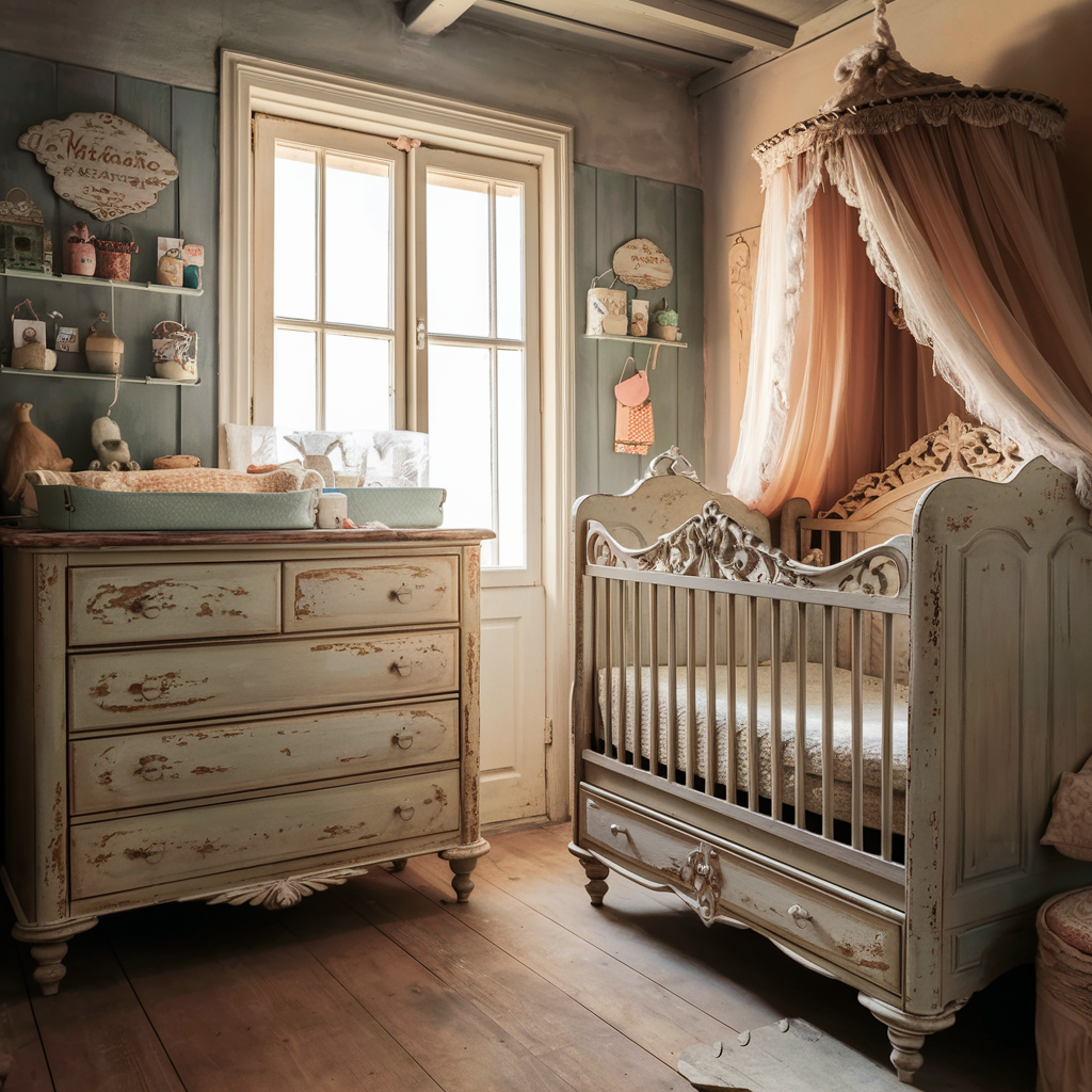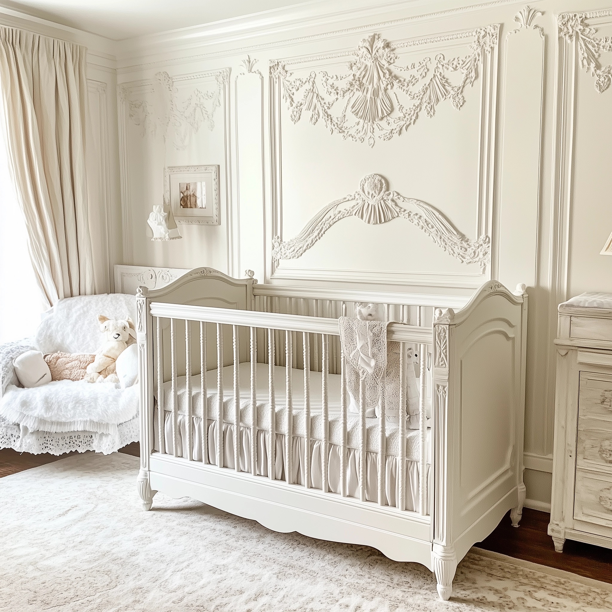 The crib is the focal point of any nursery, and in a vintage nursery, a classic crib adds a touch of timeless elegance. Look for cribs with intricate woodwork or wrought iron designs that harken back to a bygone era. White or natural wood finishes are ideal for maintaining a soft, vintage feel. Ensure that the crib meets modern safety standards while still embracing the vintage aesthetic.