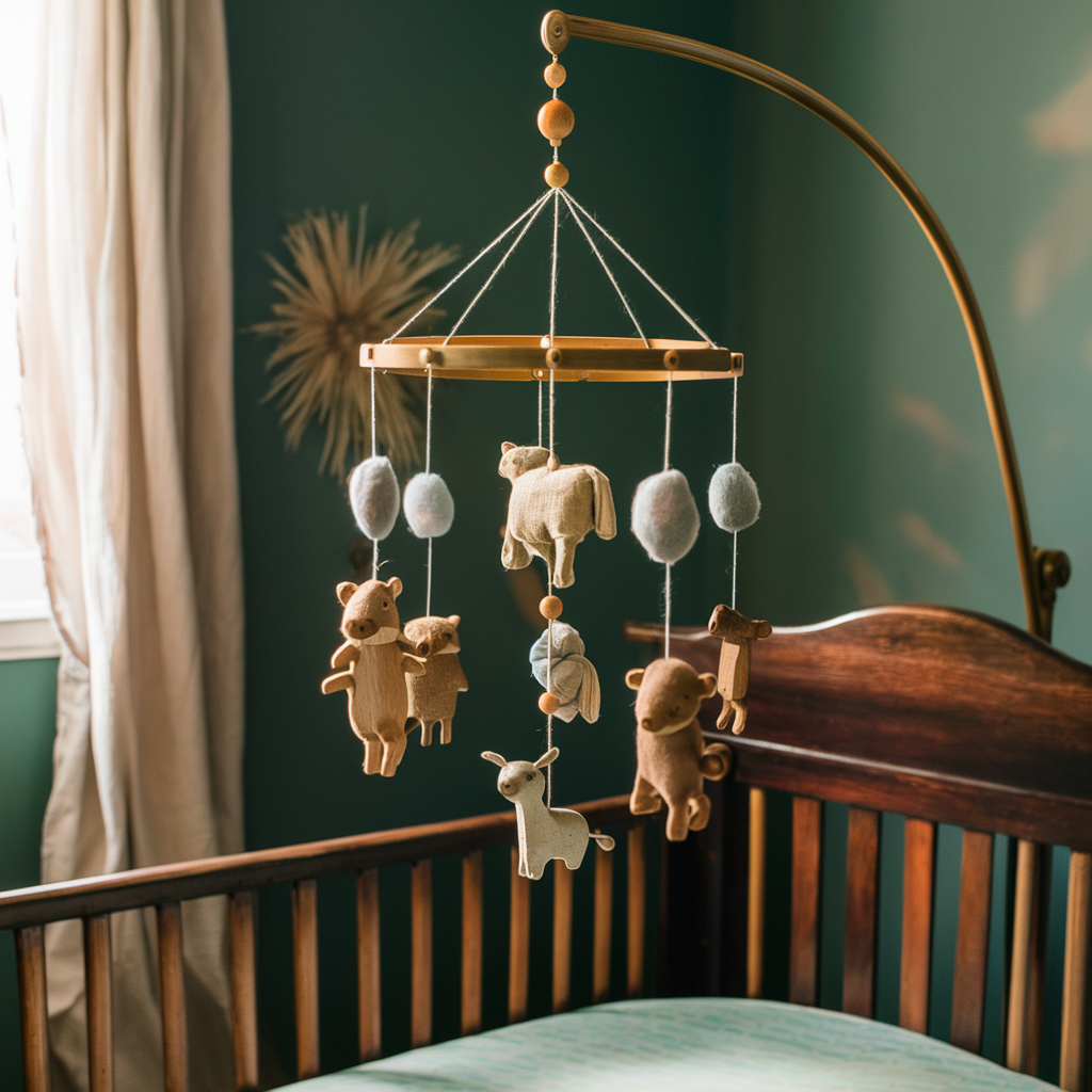 The crib mobile plays the role of a piece of decor as well as a functional fixture in a nursery. Get a vintage-inspired mobile if you appreciate historical accessorizing as it can give the nursery a nice little focus above the crib. Spinning mobiles of eco-friendly, soft, and calming colors with gentle and organic shapes are promoted. On the view of animals, floral designs, or shape patterns from the past one is brought into a state of nostalgia but still with the interest of a baby.