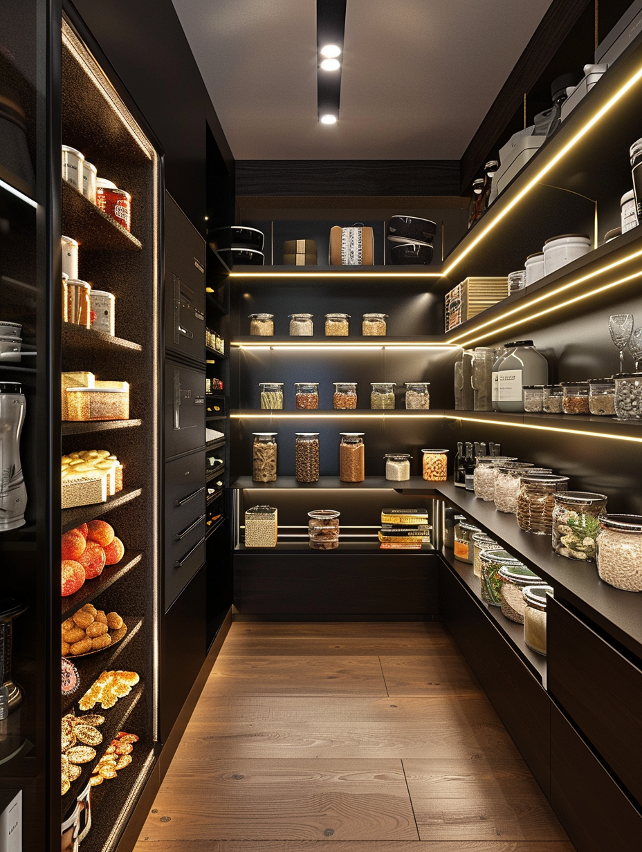Modern technology can be used to make your pantry more efficient and convenient. Smart lighting, such as motion-sensor lights, will turn the space on as you are in. Smart shelves which track and expiration dates can help you stay on track and do [missing word] food waste. The integration of technology into your pantry design will turn the old setting into a more modern, efficient space.