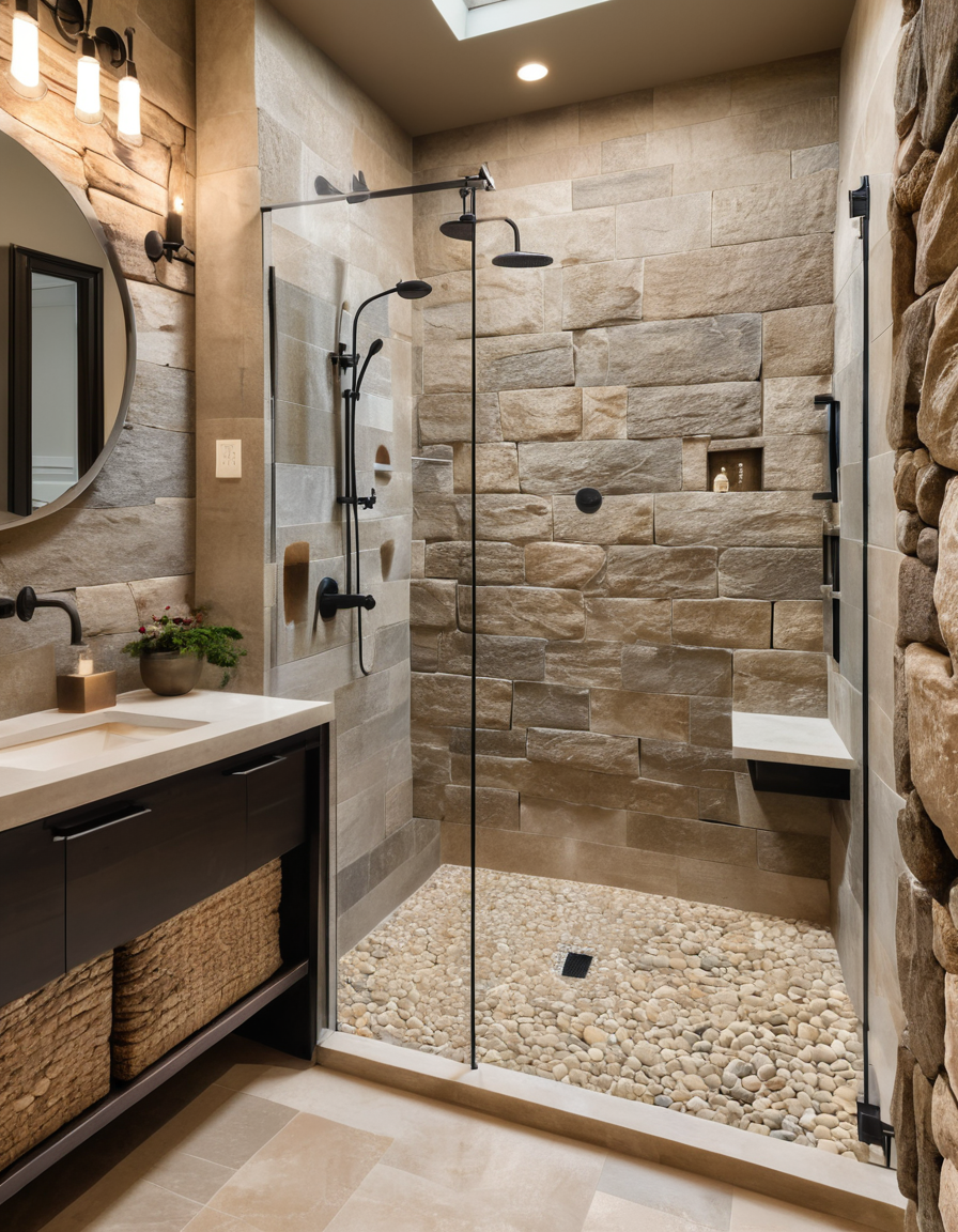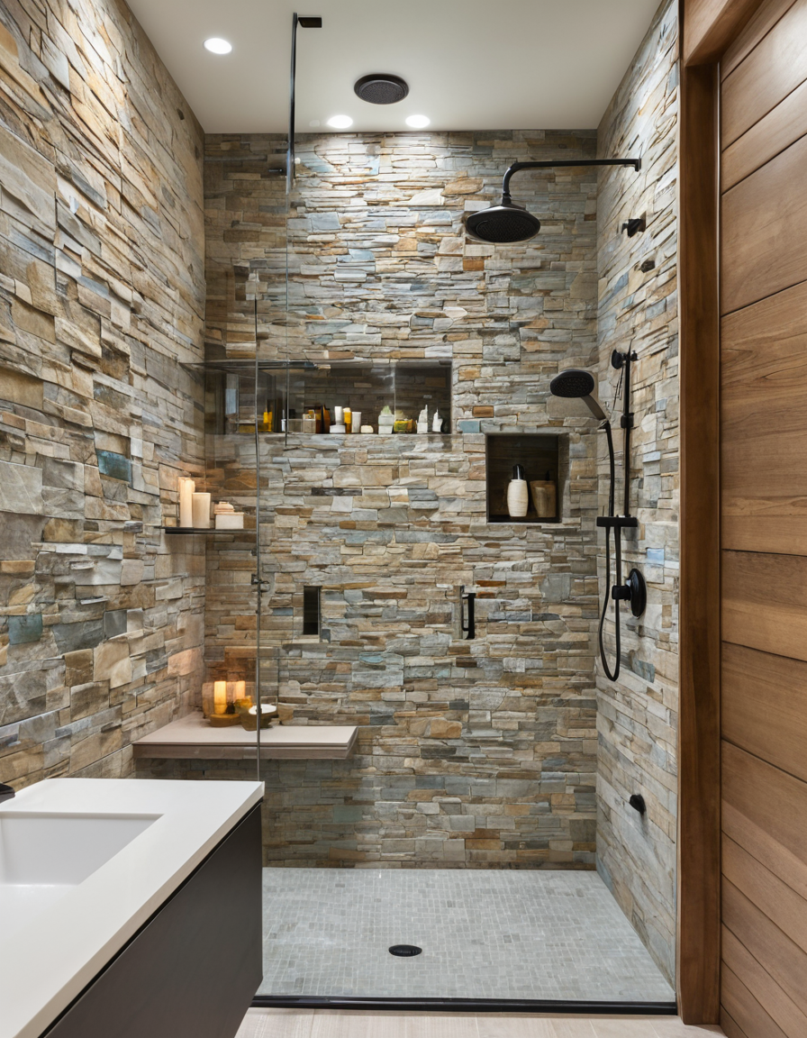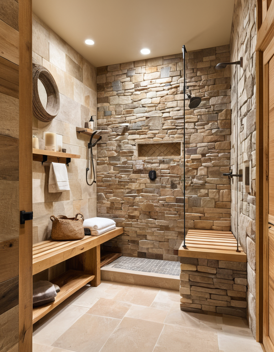 Consider bringing some of nature into your property by having a rustic walk-in shower. This shower type is traditionally the one that is constructed with the stones or the wood like surfaces, the color schemes of earthy tones, and the other elements of natural beauty as bench were gained from reused wood. This design best fits into the ambiance of the cabin and the farmhouses where it feels more cozy and serene.