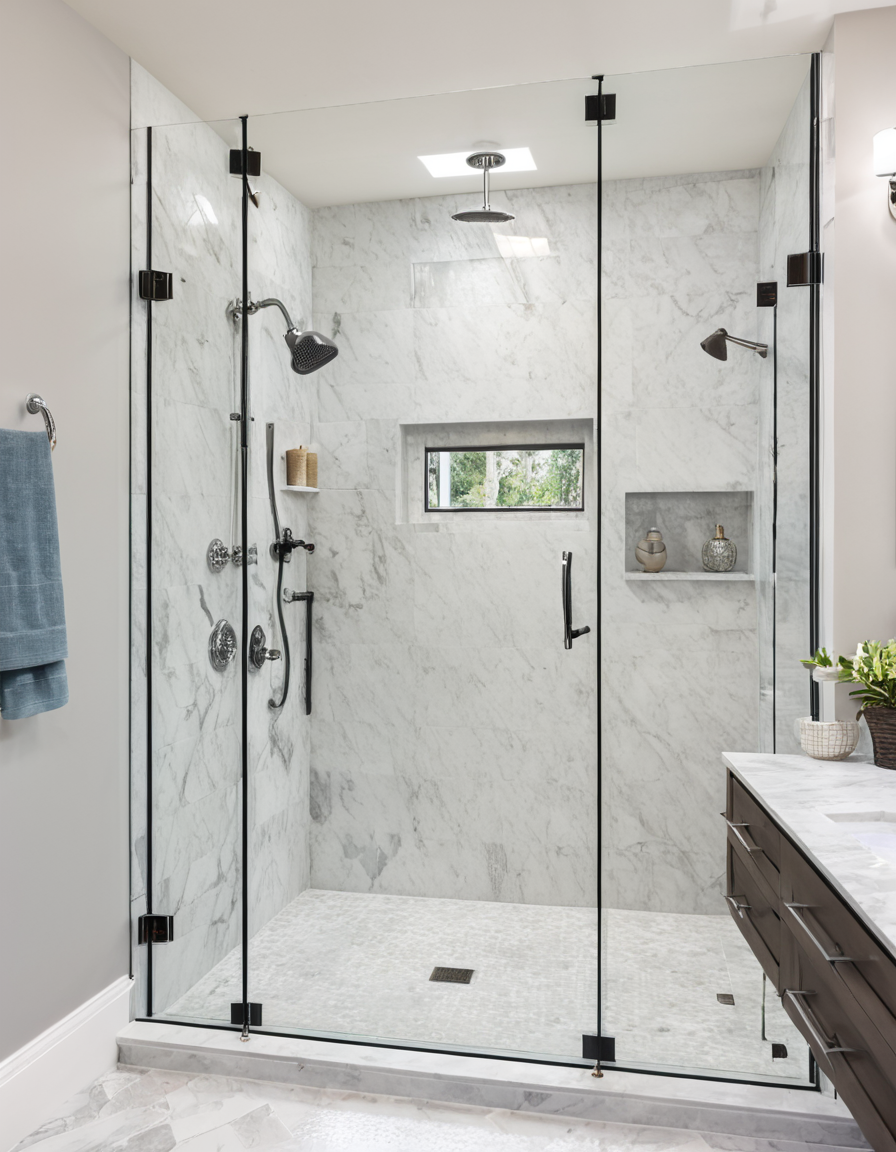 Rethink your master suite’s status as a peaceful hideaway with a walk-in shower with an extraordinary finish. Ponder huge tiled walls, glass enclosures, several showerheads, and probably a steam feature too. A happy addition to an inbuilt bench and niche storage for toiletries will convey the space to higher altitudes. Utilize long-lasting resources such as marble and natural stone to create a spa-like environment that is a work of art.