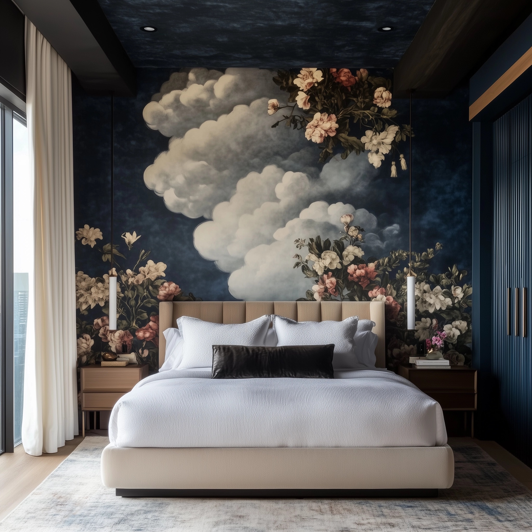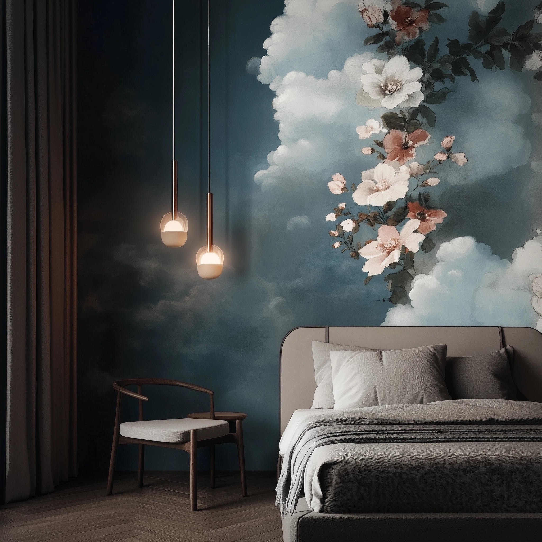 For those seeking a serene and calming environment in their bedroom, cloud-inspired wallpaper is the perfect choice. This wallpaper design often features soft, billowing clouds in shades of blue and white, creating a peaceful atmosphere reminiscent of a clear sky. Whether used on all walls or as a feature wall, cloud patterns bring a sense of tranquility and openness to the room.