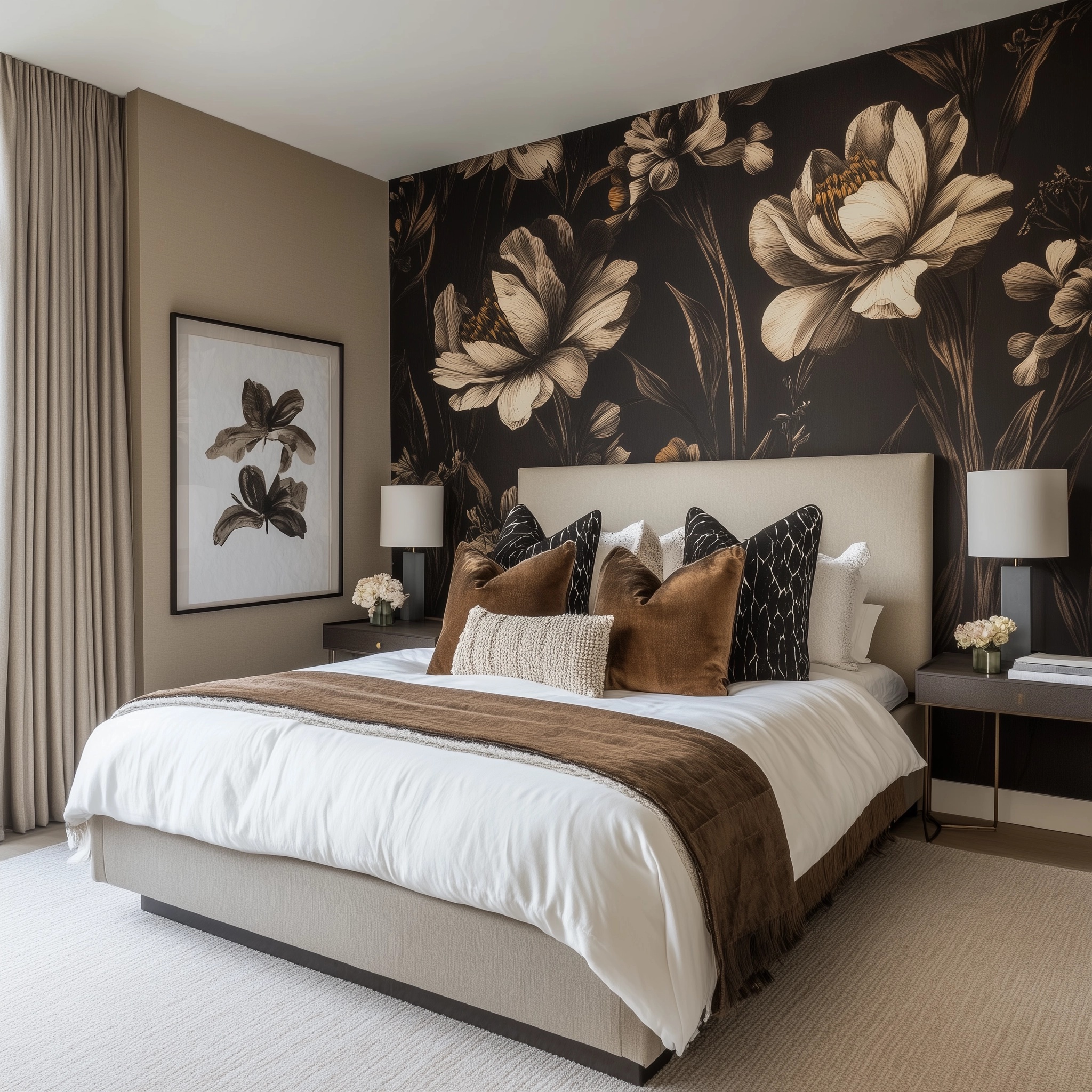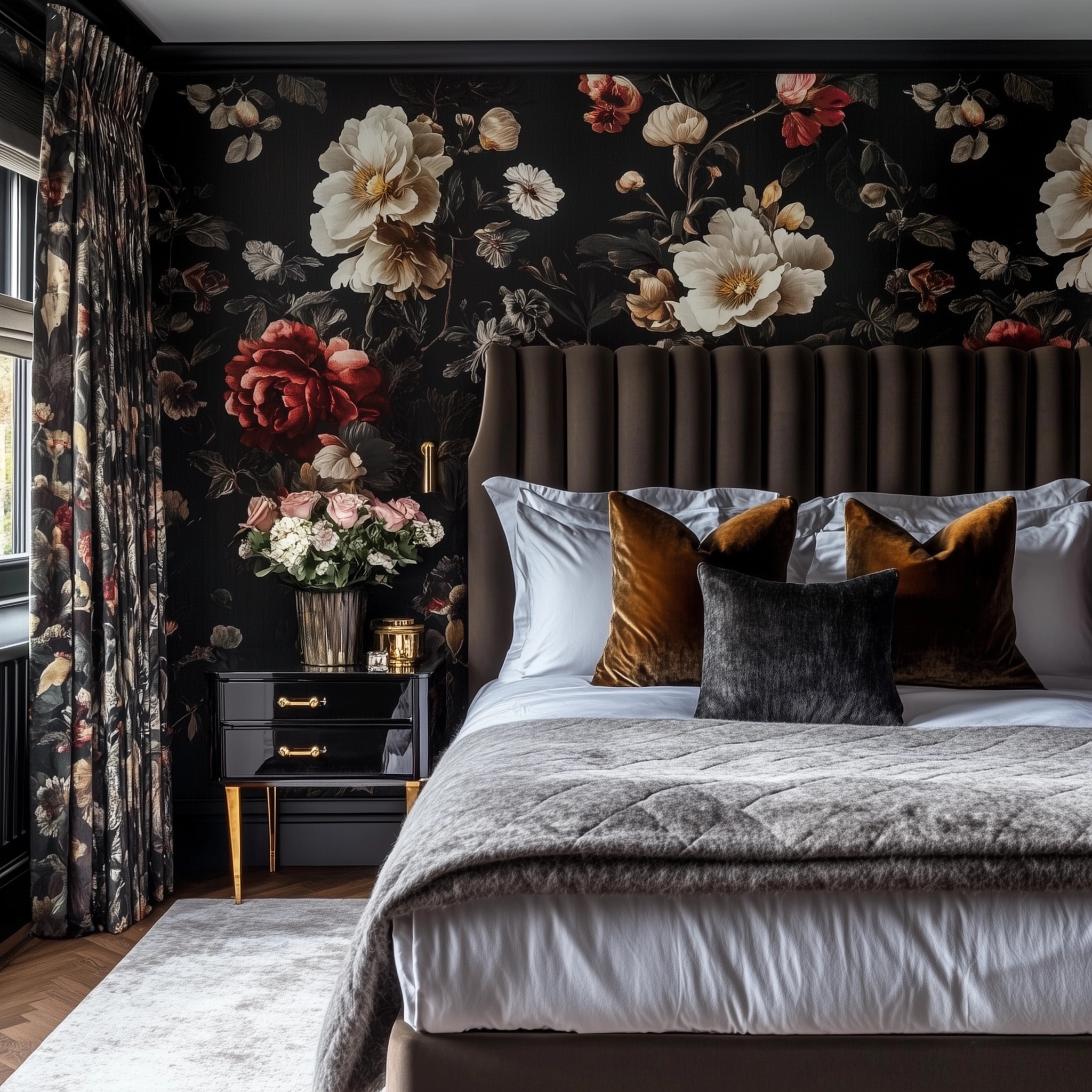Dark Floral Wallpaper for a Sophisticated Bedroom
