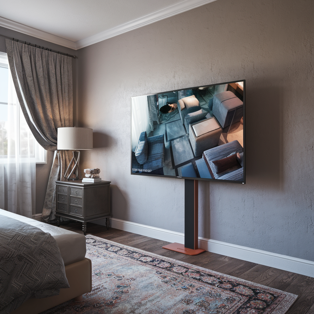 If you are using a stand or piece of furniture to hang your TV, consider the width of the stand and the depth of the furniture.