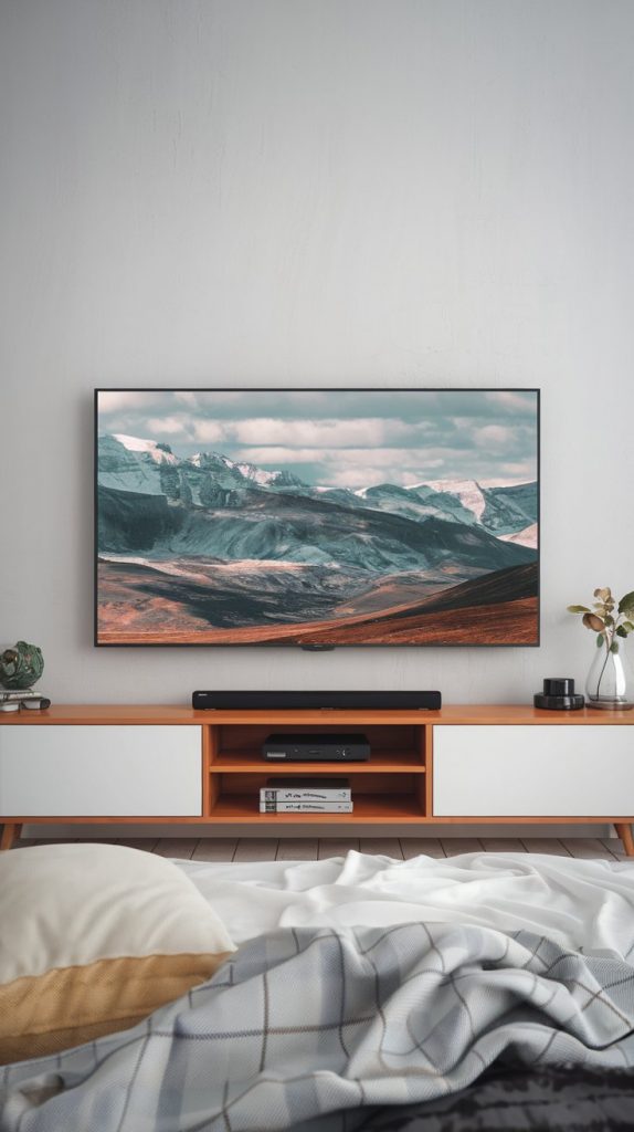 In the case of modern UHD/4K TVs, they do not follow these rules as much. You will also notice that these super-duper display screens are not suited because for the most part, you can almost touch these screens. In fact, you can take the size of your TV in inches as the distance from your sitting area at a 1:1 scale. For instance, a 55-inch 4K TV can be set at just 55 inches (about 4.5 feet) from your bed, and it will be the best choice for your viewing pleasure.