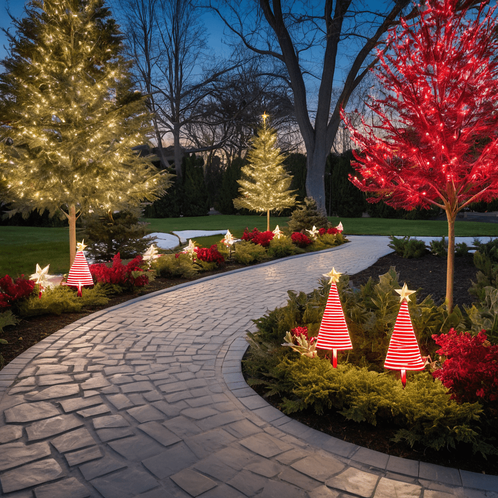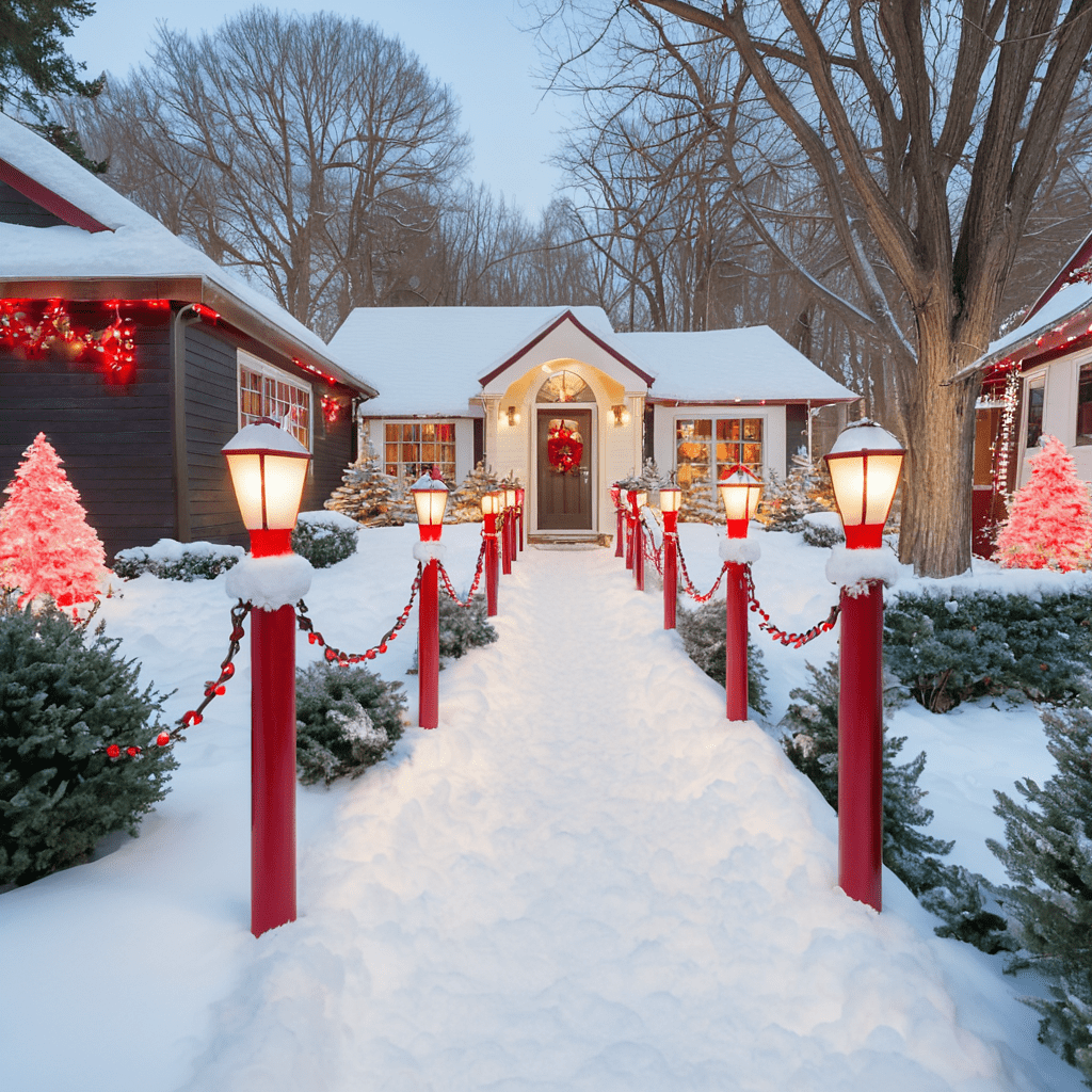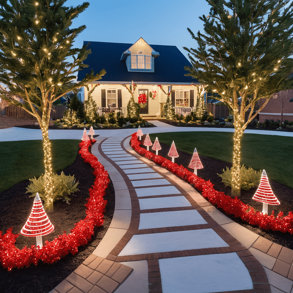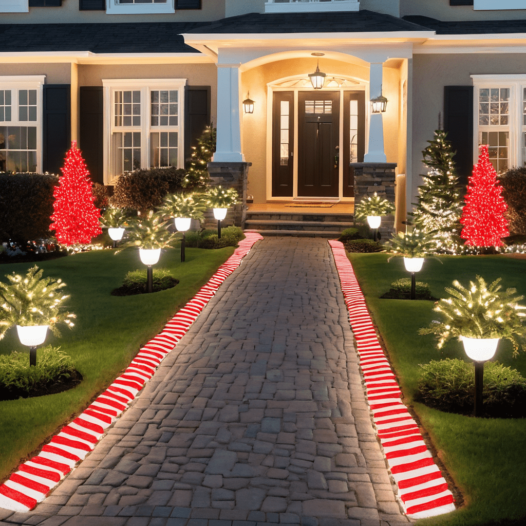 Pathway Lighting Ideas with Red and White Christmas Lights