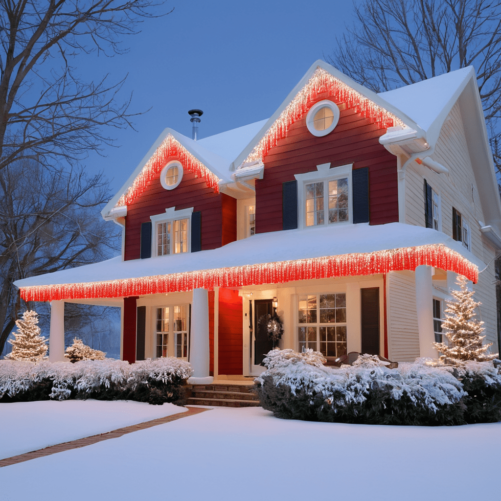 White and Red Icicle Lights for a Winter Wonderland Theme