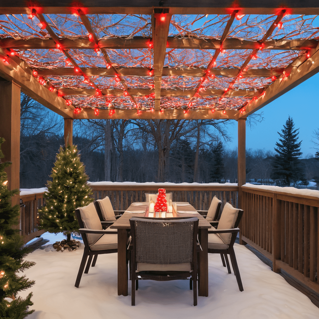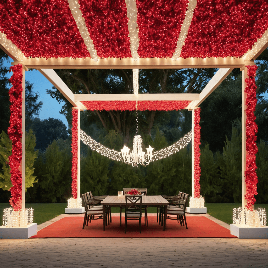 Hanging Red and White Lights from Outdoor Rafters and Pergolas