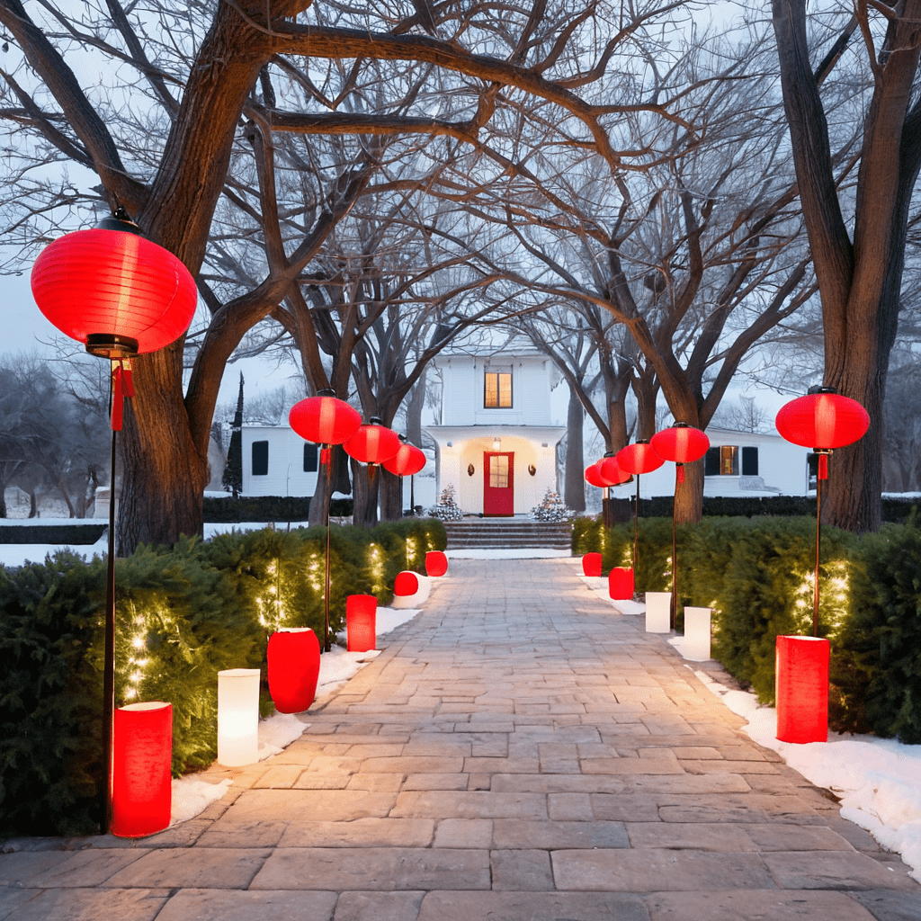 Red and White Lanterns for a Cozy Outdoor Christmas
