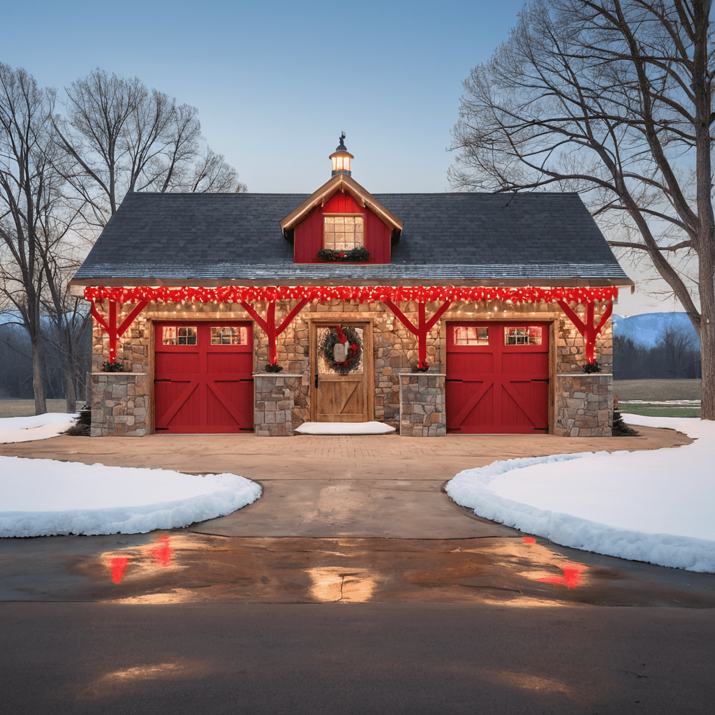 Creative Red and White Christmas Light Designs for Garages