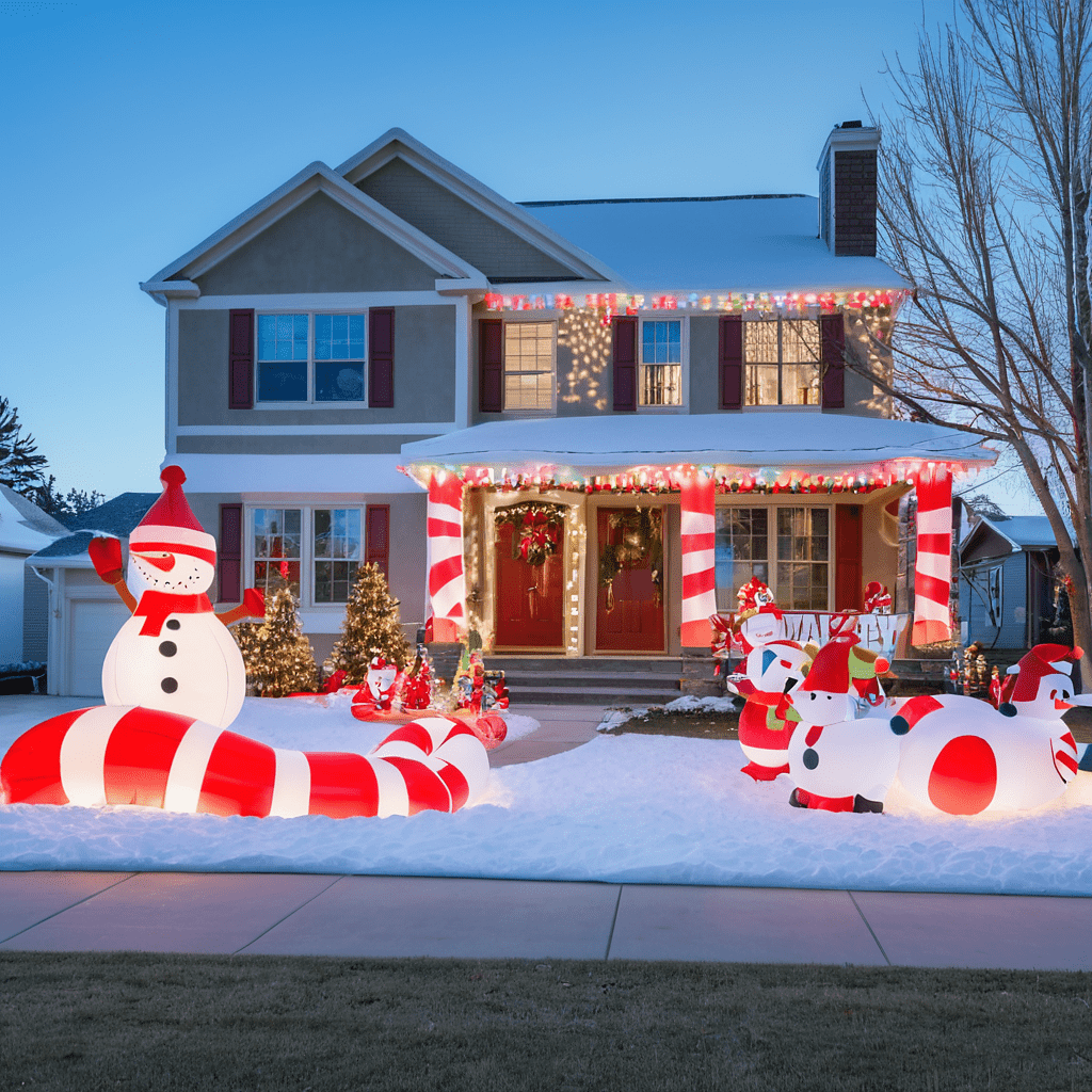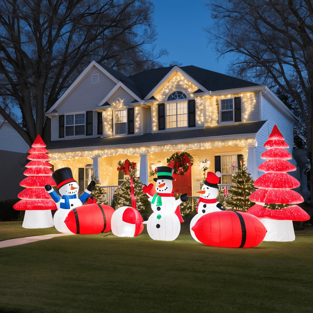 Using Red and White Lights to Highlight Holiday Inflatables