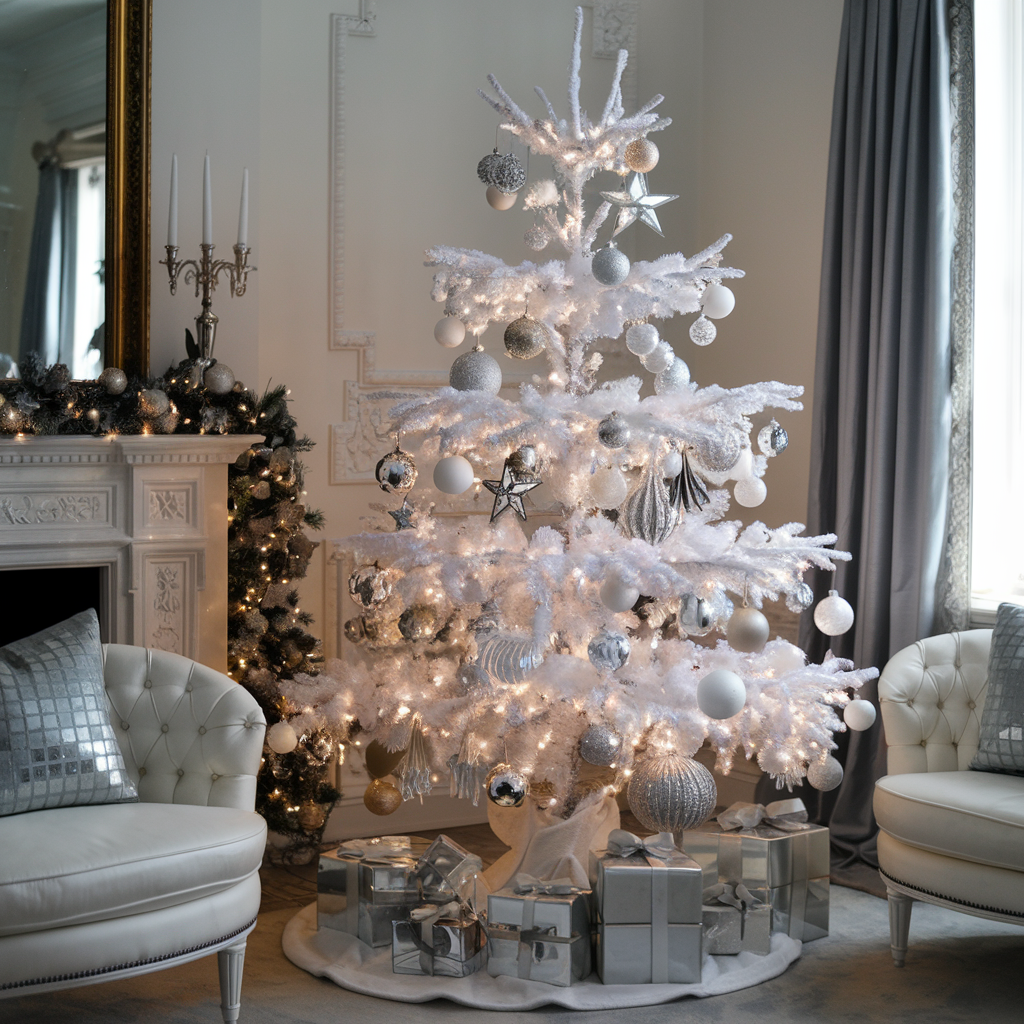 One of the tricks in making your white Christmas tree the focal point of holiday decorations is through the use of silver accents. The frame can be built by white lights and, after that, silver-tinted garlands, silver-tipped pinecones, and silver ornaments should be added. For an added hint of luxury, consider throwing in some glittery stars and metallic ribbons in your design.
