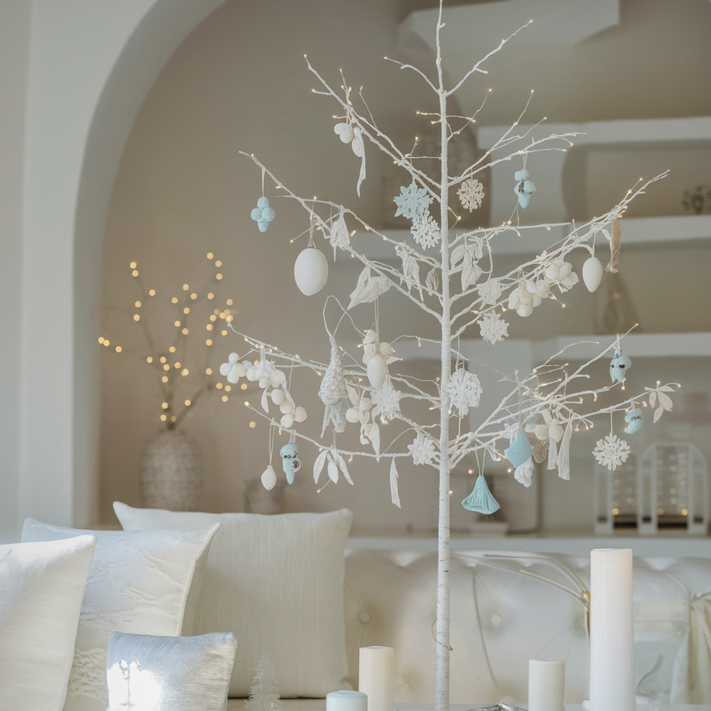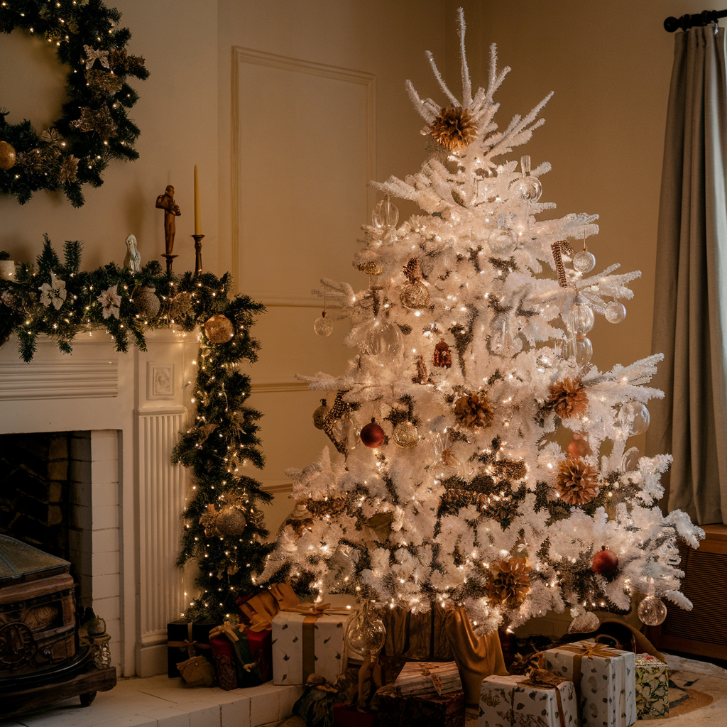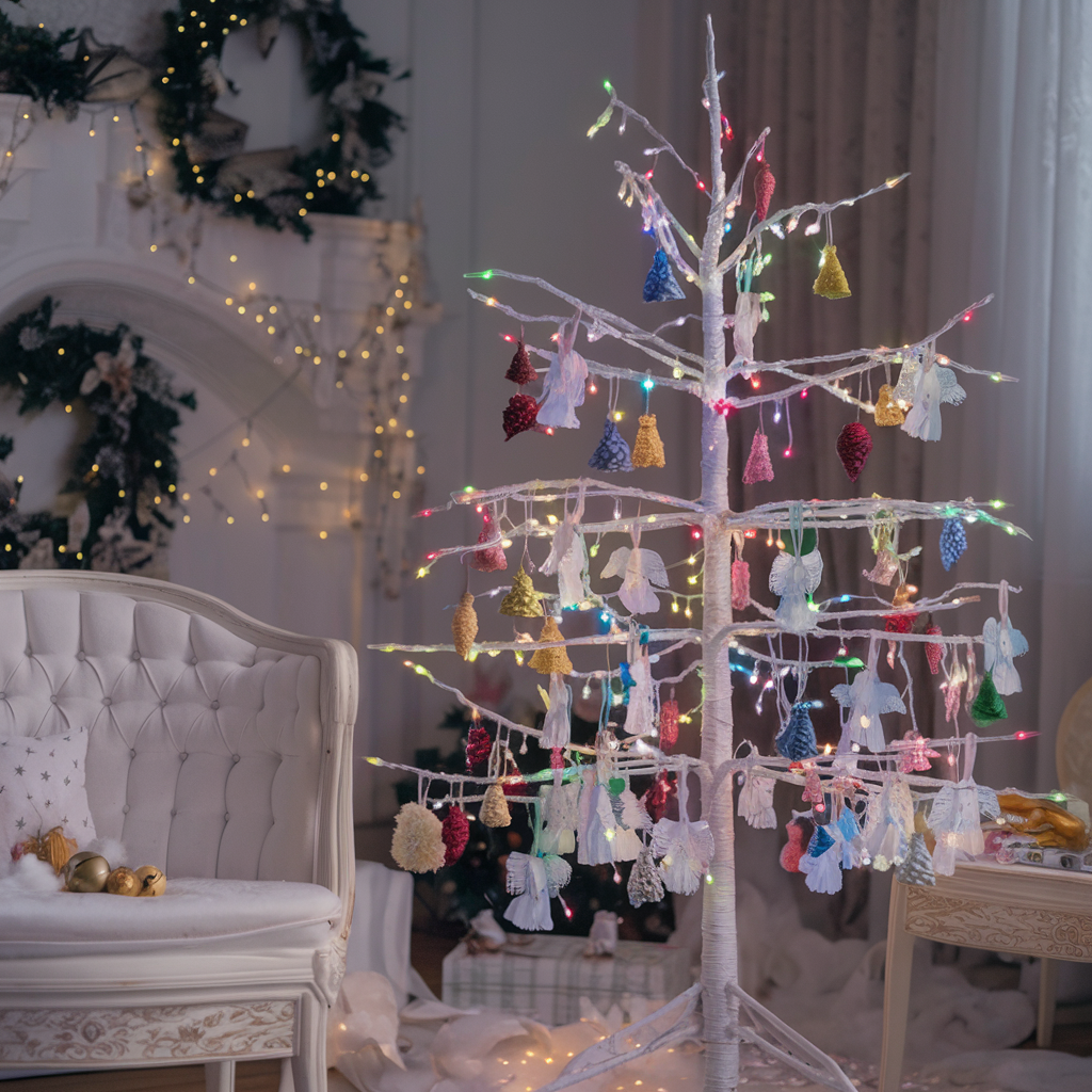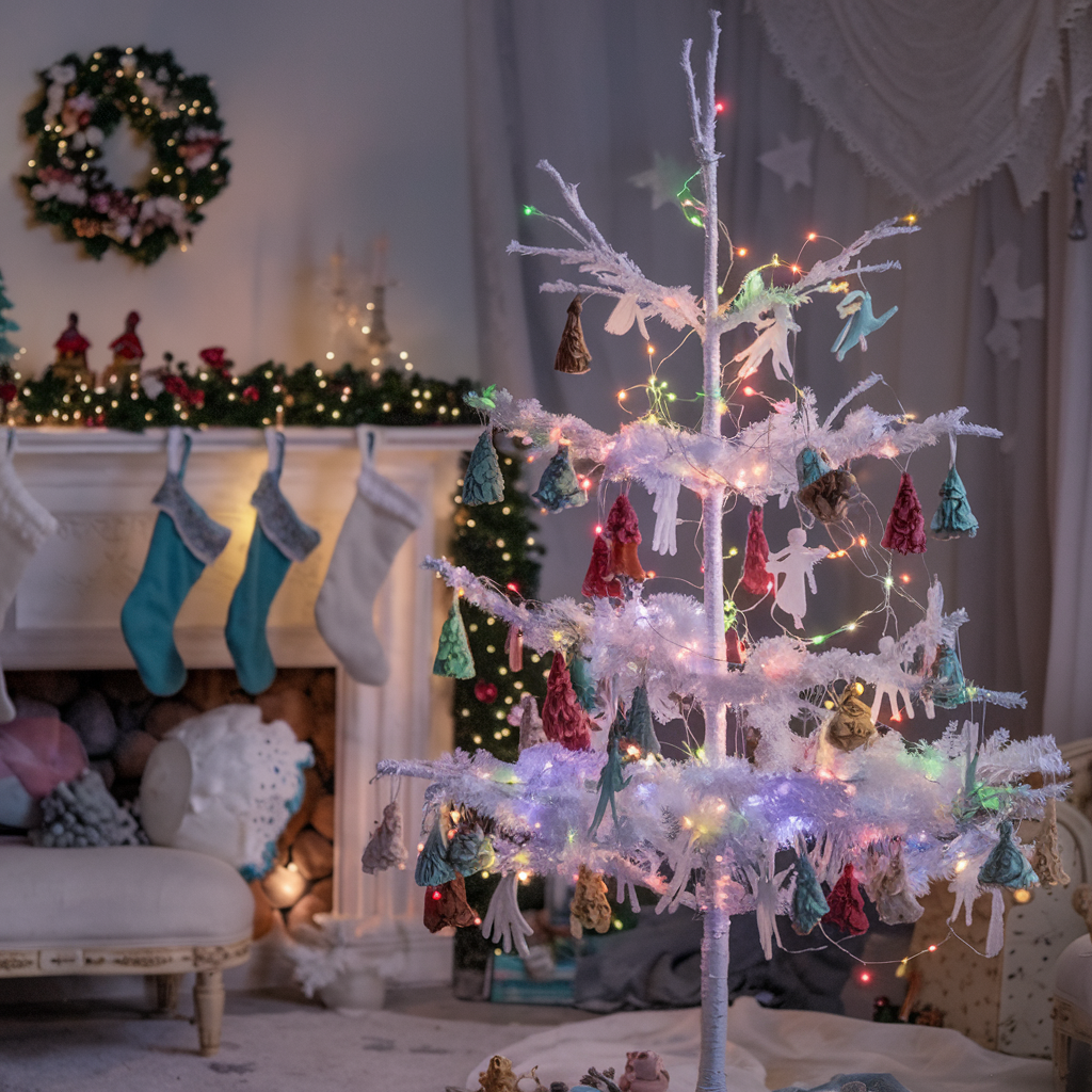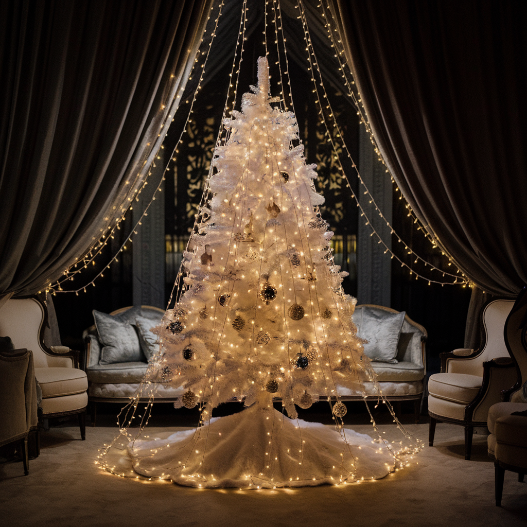 White fairy lights can add a whimsical and enchanting touch to your white Christmas light tree. They are usually smaller and more subtle than the traditional string lights, so they can be draped loosely around the tree to create a soft twinkling effect. Pair them with delicate ornaments like glass angels, miniature bells, and snow-dusted pinecones to enhance the fairy-tale ambiance. The design is ideal for those who want a tree that is light, airy, and has a magical feel.