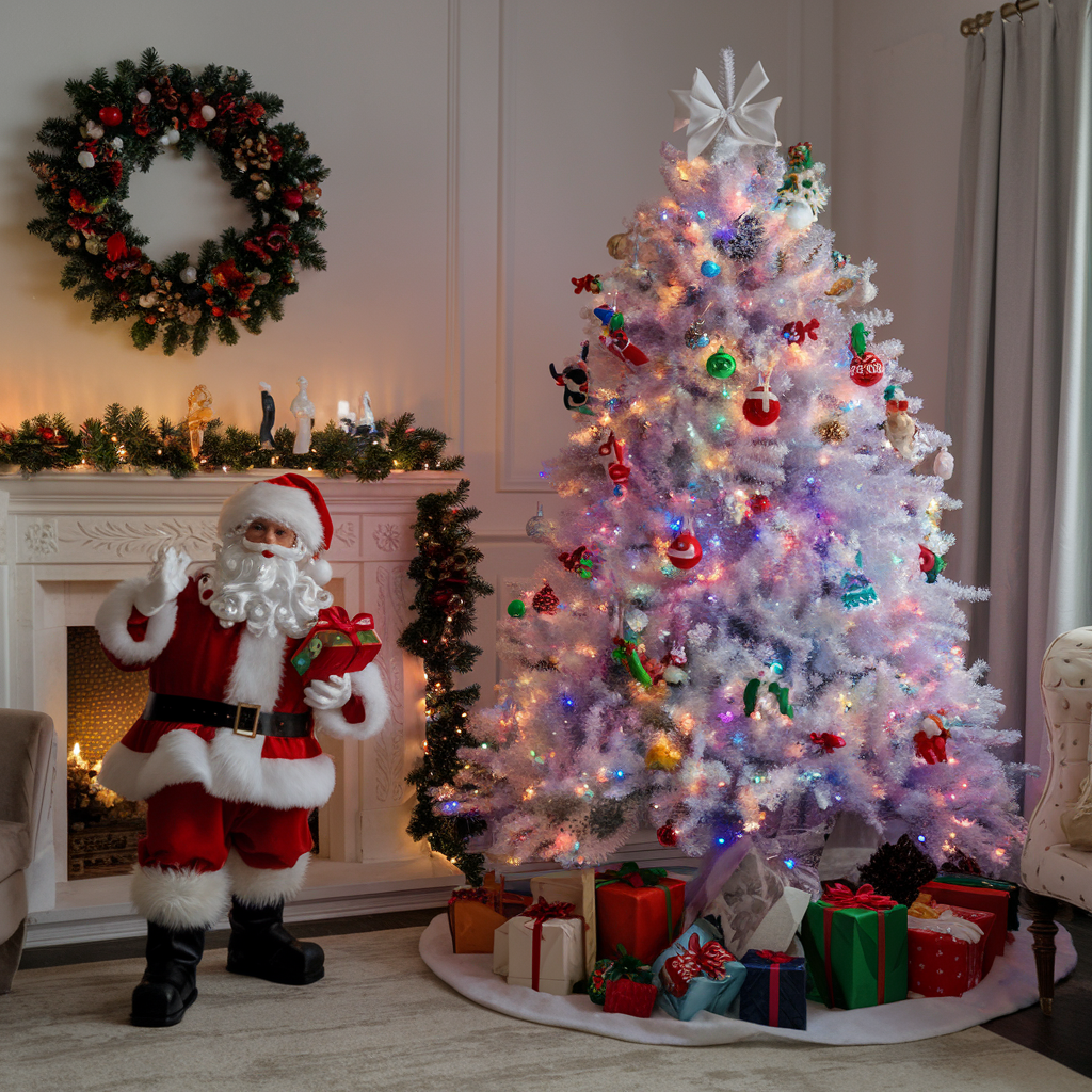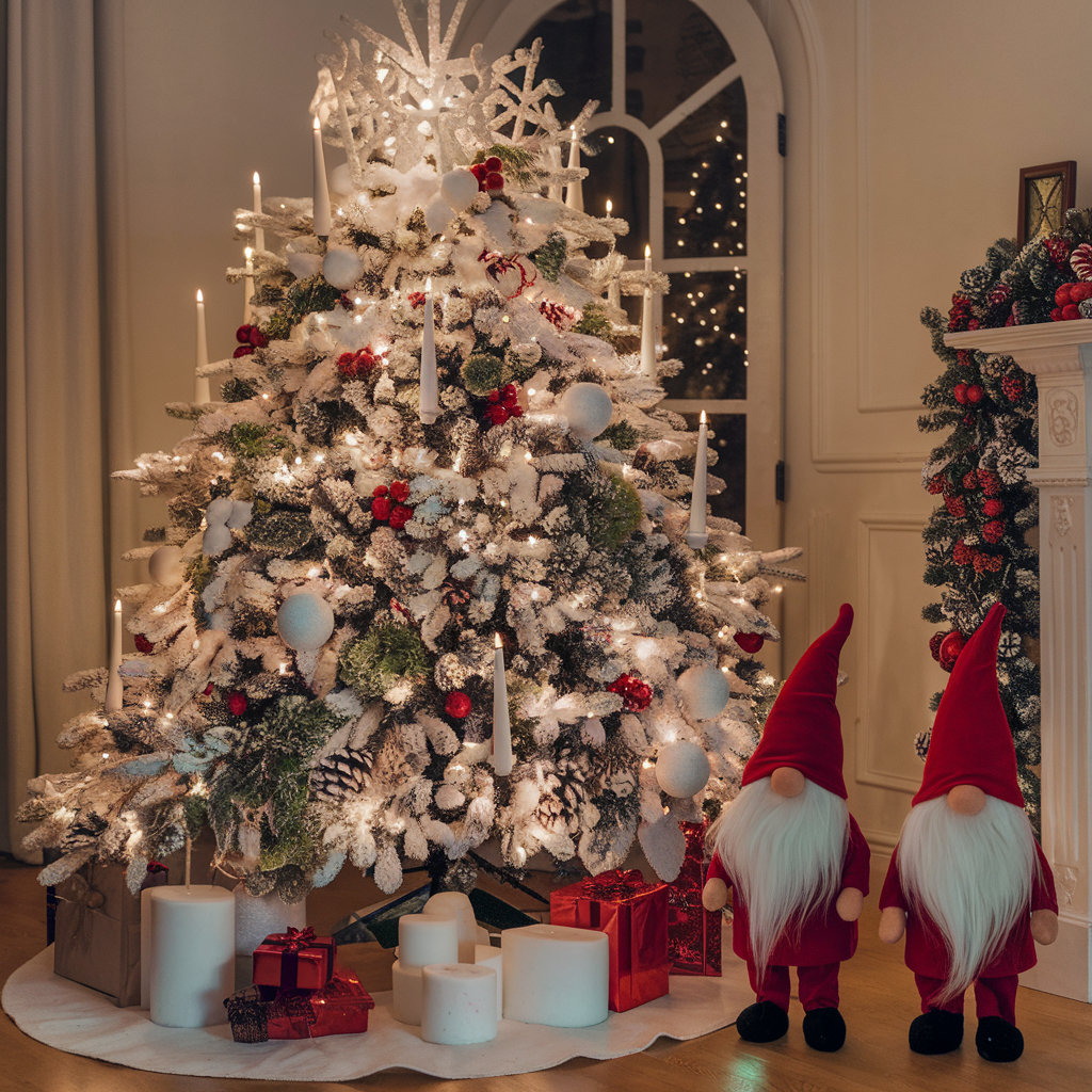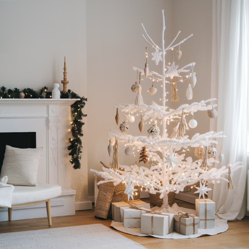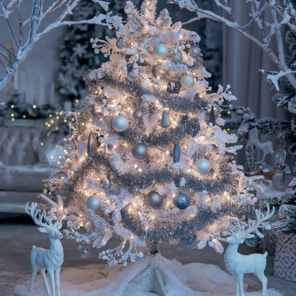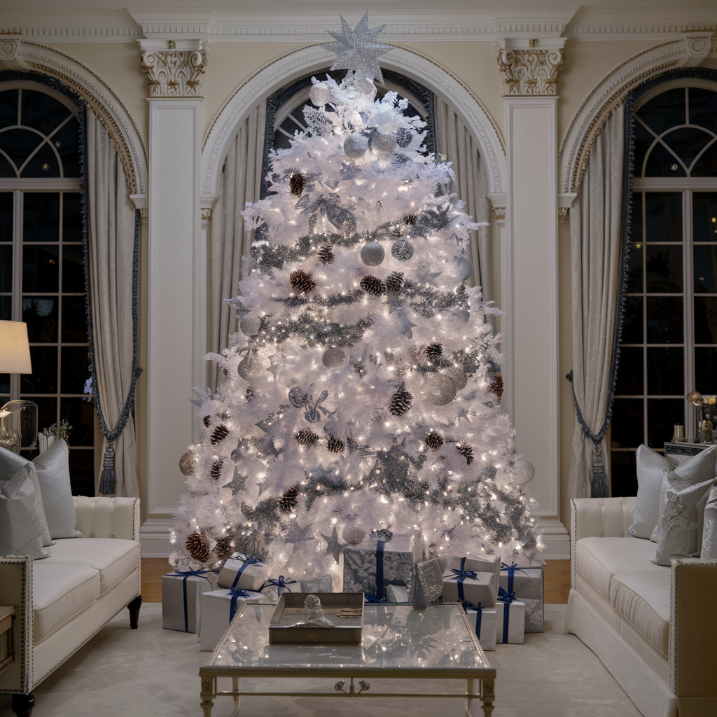 White fairy lights can add a whimsical and enchanting touch to your white Christmas light tree. They are usually smaller and more subtle than the traditional string lights, so they can be draped loosely around the tree to create a soft twinkling effect. Pair them with delicate ornaments like glass angels, miniature bells, and snow-dusted pinecones to enhance the fairy-tale ambiance. The design is ideal for those who want a tree that is light, airy, and has a magical feel.