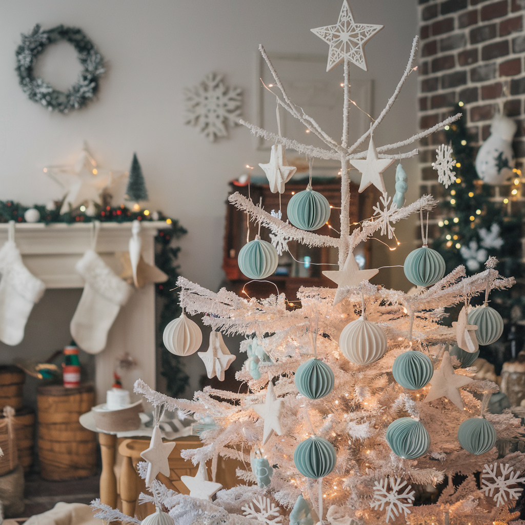 Bring out the magic of winter with these snowflake accents to your white Christmas light tree. First, you wrap your tree in white lights, then add a selection of snowflake ornaments in different sizes and materials, like glass, metal, and wood. A hint of extra frost can be created by using sparkly or iridescent snowflakes that are reflective and bright at night. This design gives a feeling of the fresh crispness of a cold winter’s day, for those who enjoy a winter theme, it is just a home.