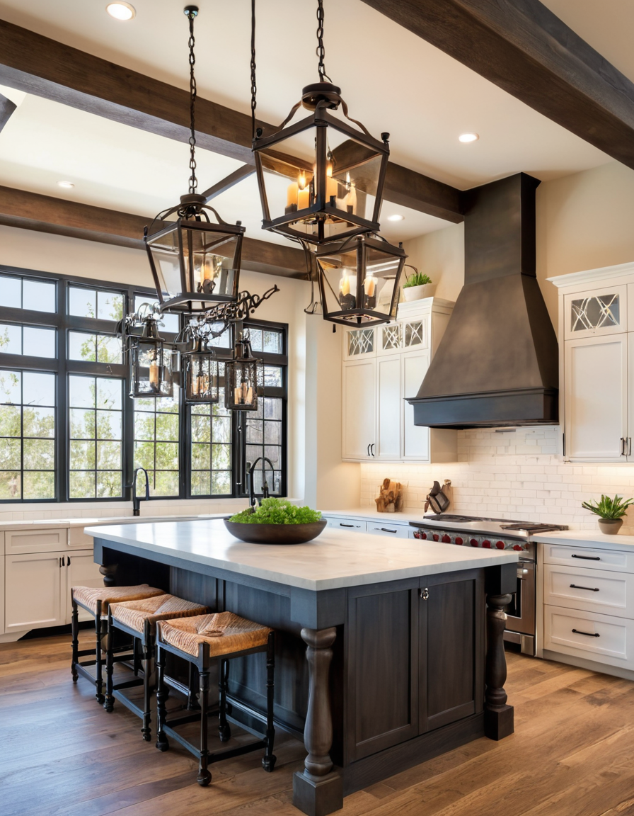 Rustic Kitchen Lighting Ideas with Lanterns and Chandeliers