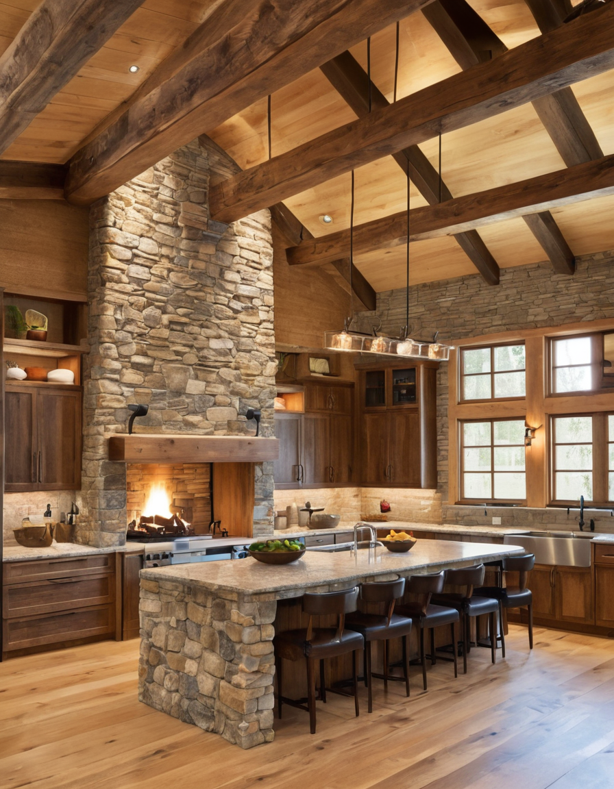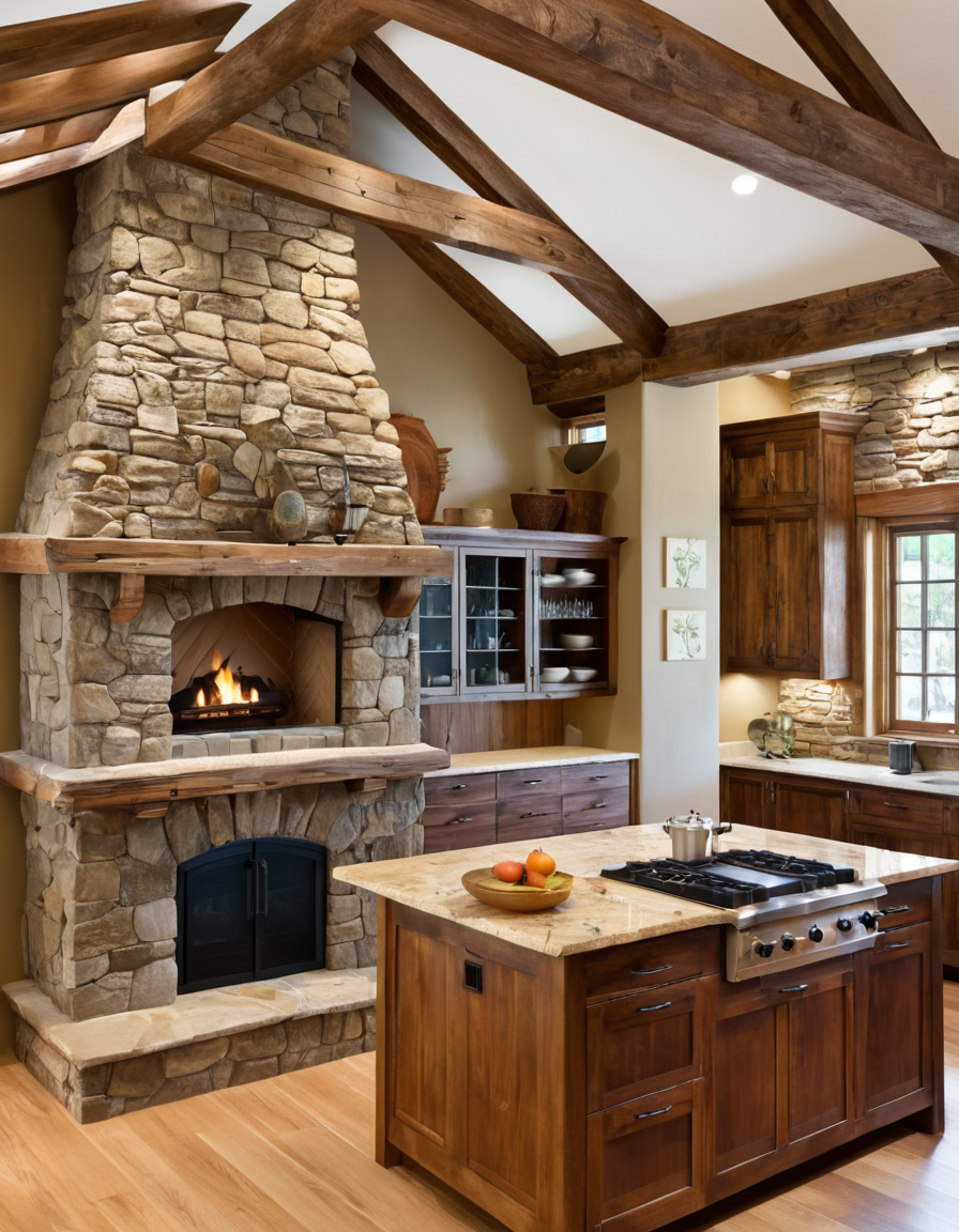 Creating a Cozy Rustic Kitchen with a Stone Fireplace