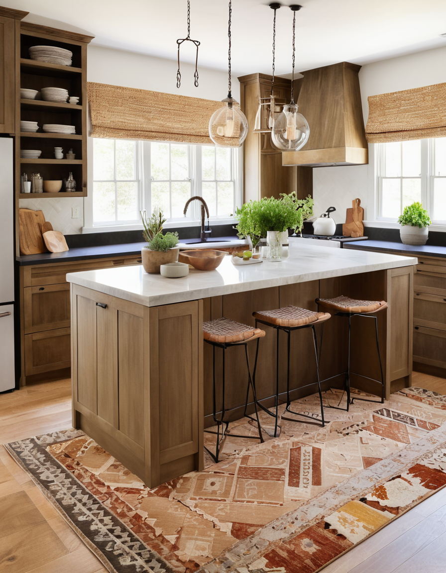 Vintage Rugs and Textiles for a Rustic Kitchen Look