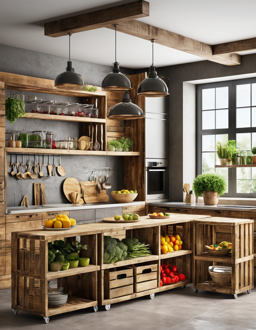 Rustic Kitchen Storage Solutions with Wooden Crates