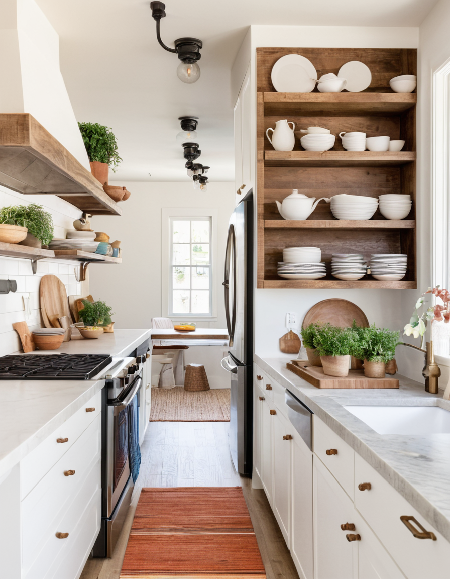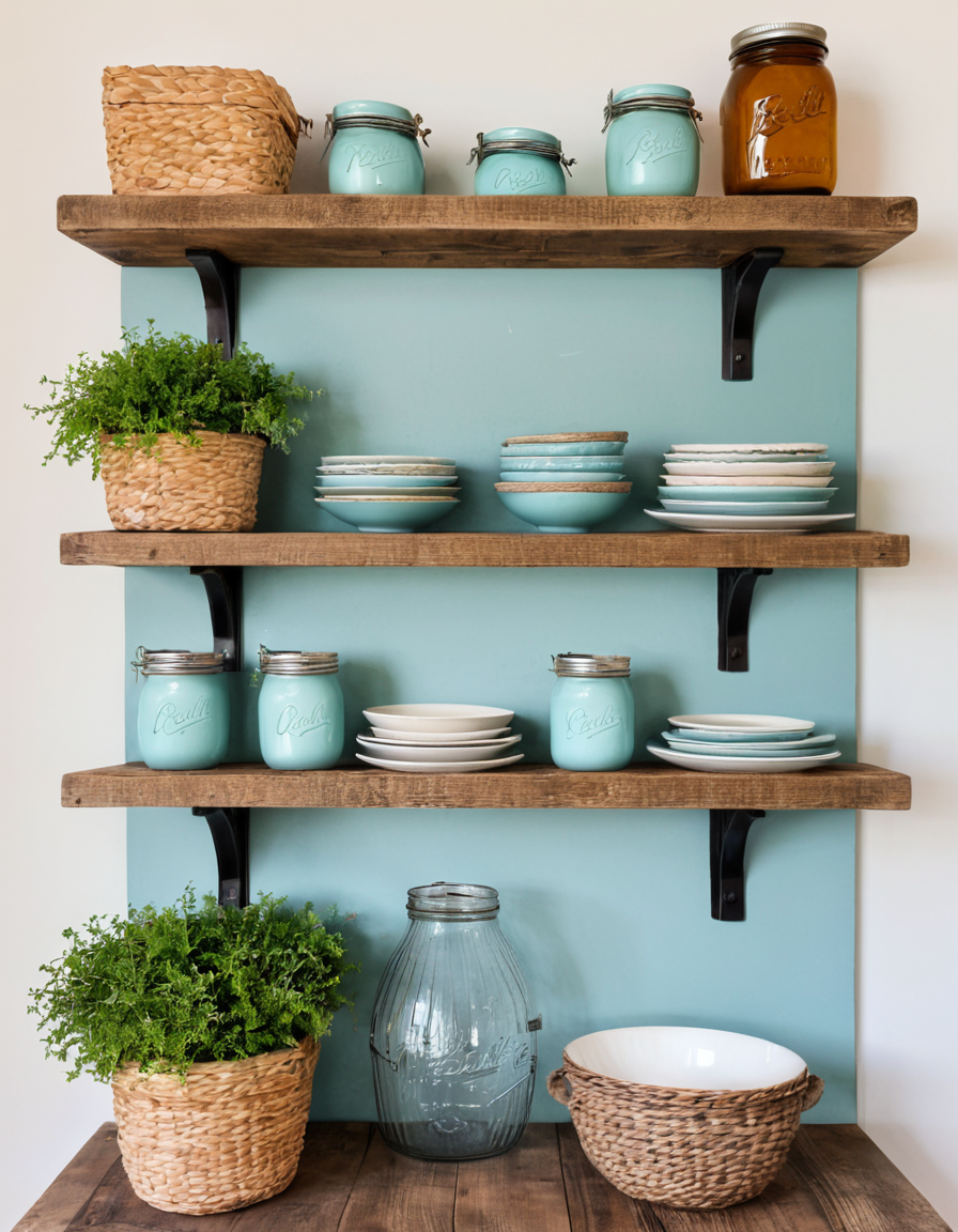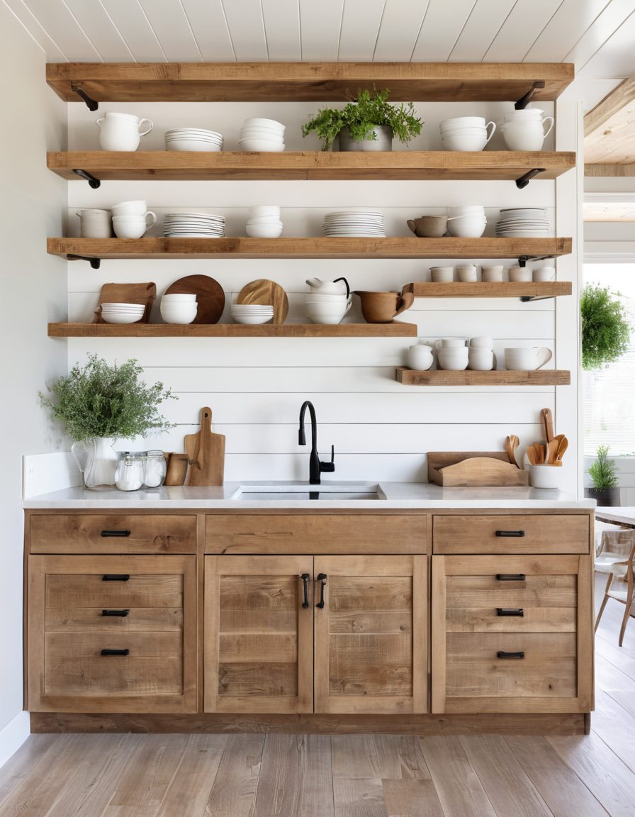 Open Shelving with Rustic Wood for the Display of Kitchenware