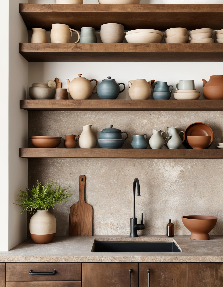 Stoneware and Pottery in Wood Kitchen Decor
