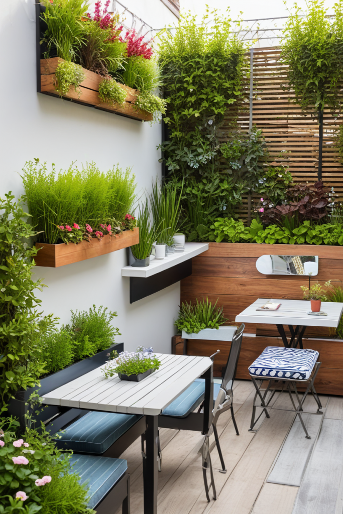 Small yards can feel spacious with clever designs. Vertical gardens, wall-mounted planters, and multi-functional furniture, such as benches with storage, can save space. Use mirrors on fences to create the illusion of depth, and focus on compact flowering plants for bursts of color.
